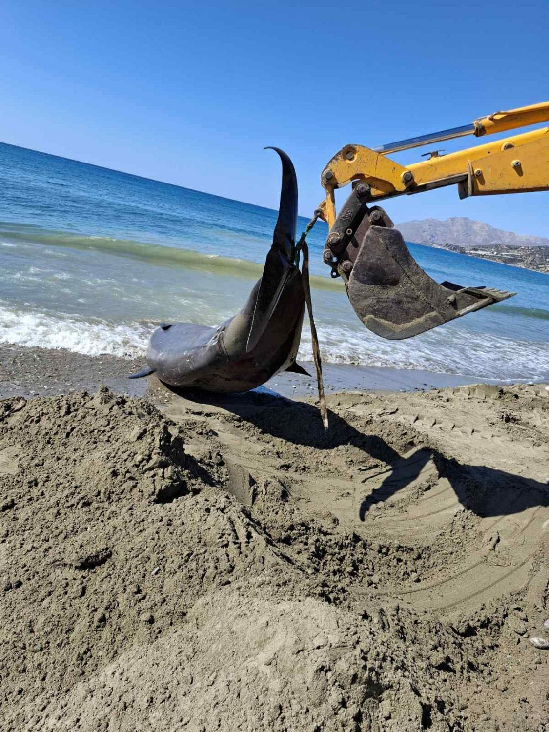 Με την επιμέλεια του Δήμου Βιάννου και την επίβλεψη του αρμόδιου Αντιδήμαρχου Θοδωρή Καρτσάκη και κατόπιν συνεννόησης με το Κεντρικό Λιμεναρχείο Ηρακλείου, ανασύρθηκε η φάλαινα μήκους 6 μέτρων που εκβράστηκε στον Κερατόκαμπο.
