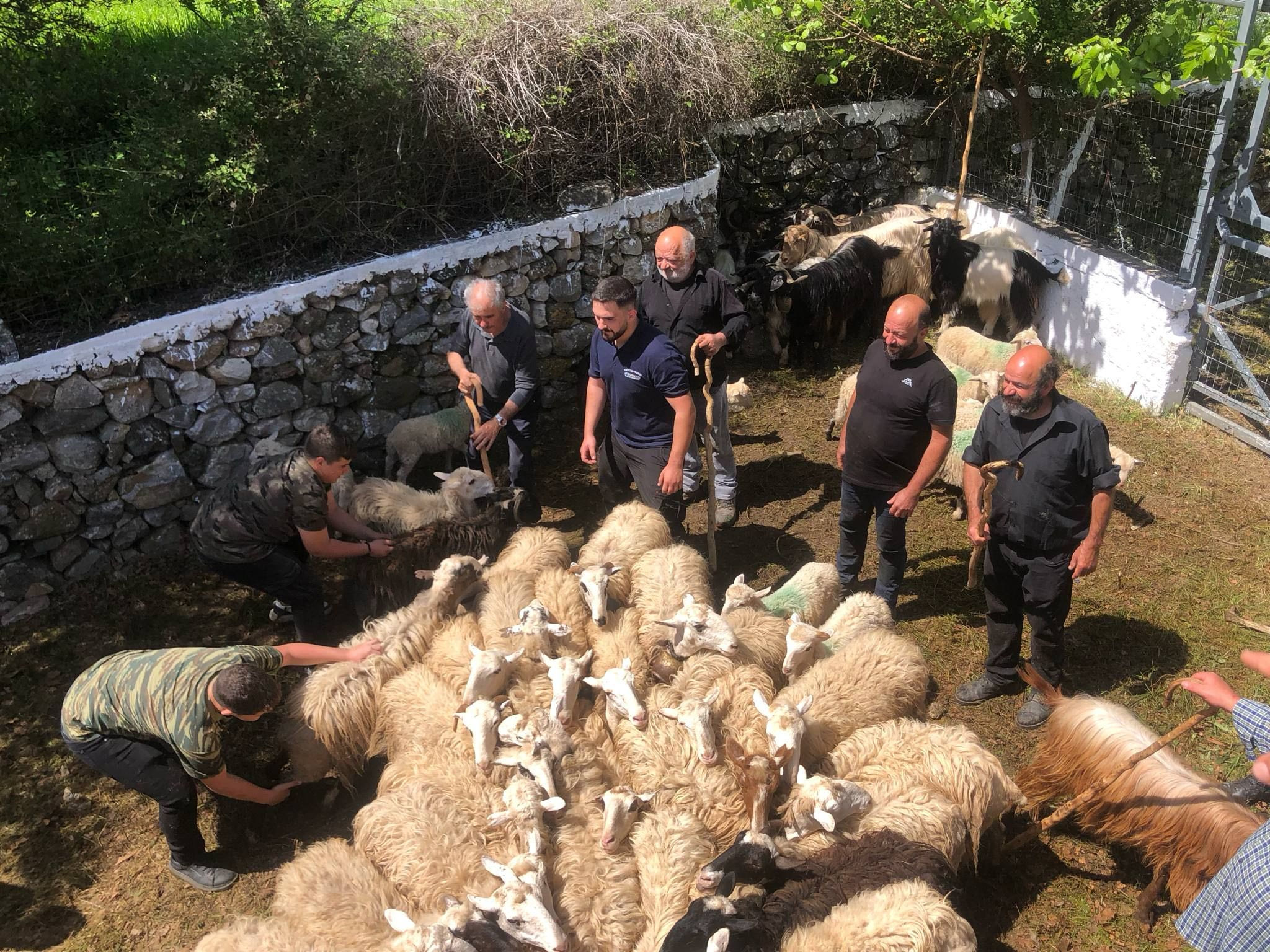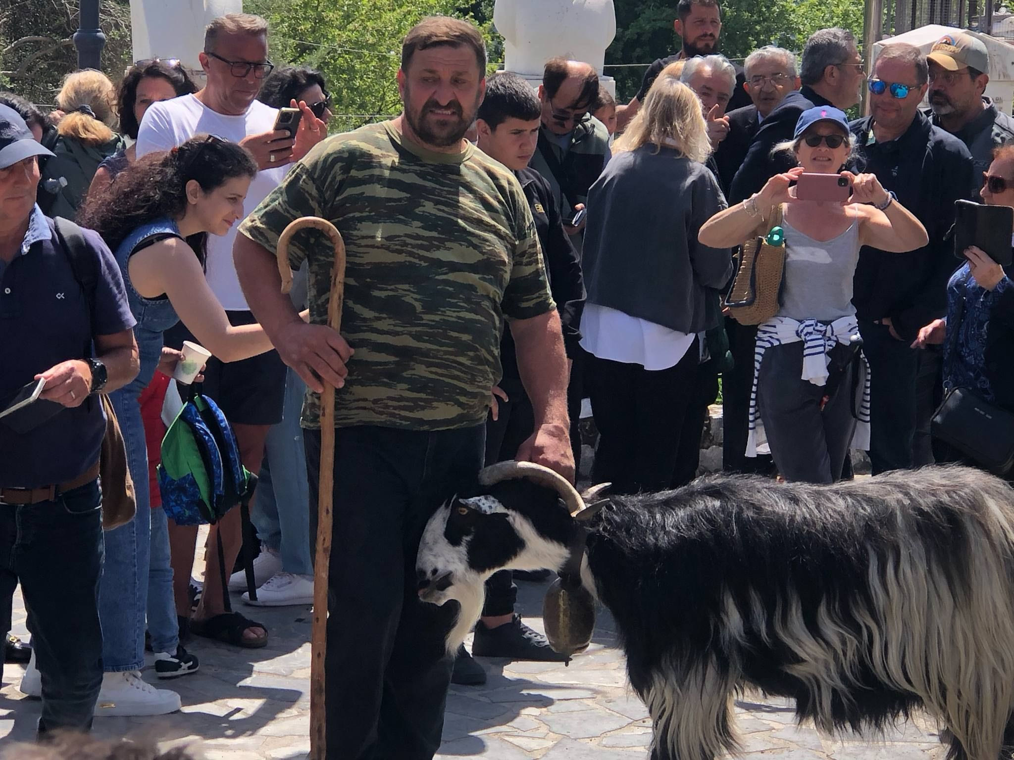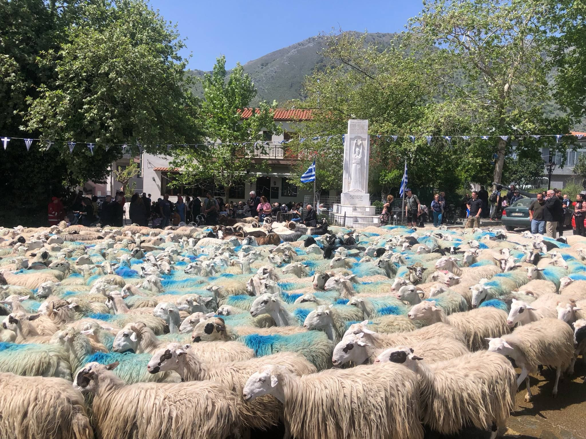 Τα αιγοπρόβατα, με… μπροστάρηδες τους τράγους και τα κριάρια, συγκεντρώνονται στην πλατεία κατά χιλιάδες και περιμένουν την… σειρά τους, για την ευλογία και το άρμεγμα. Στη συνέχεια, παίρνουν τον δρόμο για τα μαντριά τους.