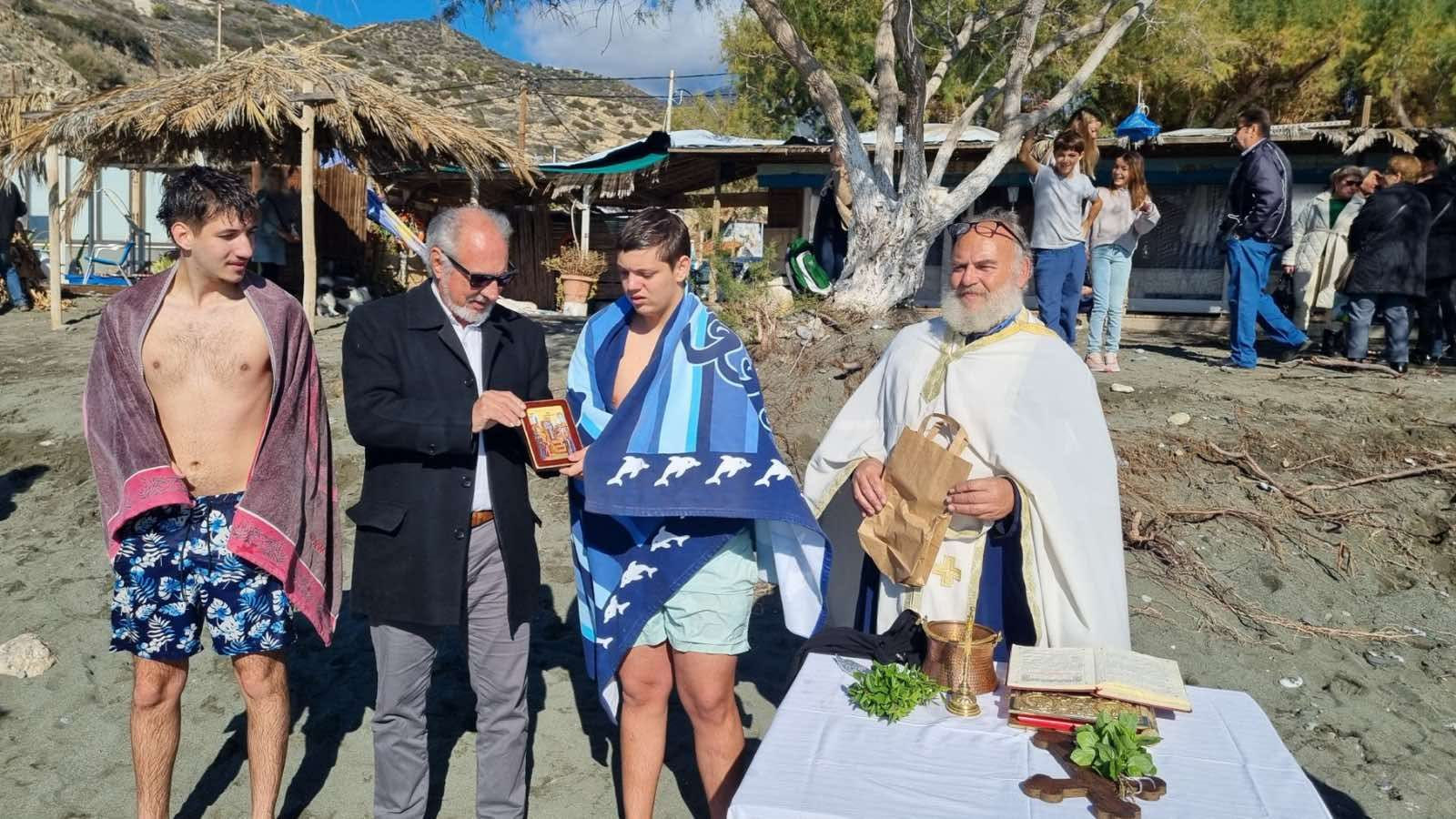 Με σύμμαχο τον καλό καιρό ο καθαγιασμός των υδάτων πραγματοποιήθηκε στις παραλίες της Ψαρής Φοράδας και των Τερτσών, στο λιμάνι της Άρβης, στην δεξαμενή της Άνω Βιάννου, καθώς και στο λιμάνι του Καστρίου, παρουσία του Δημάρχου Βιάννου κ. Παύλου Μπαριτάκη, του Σεβασμιότατου Μητροπολίτη