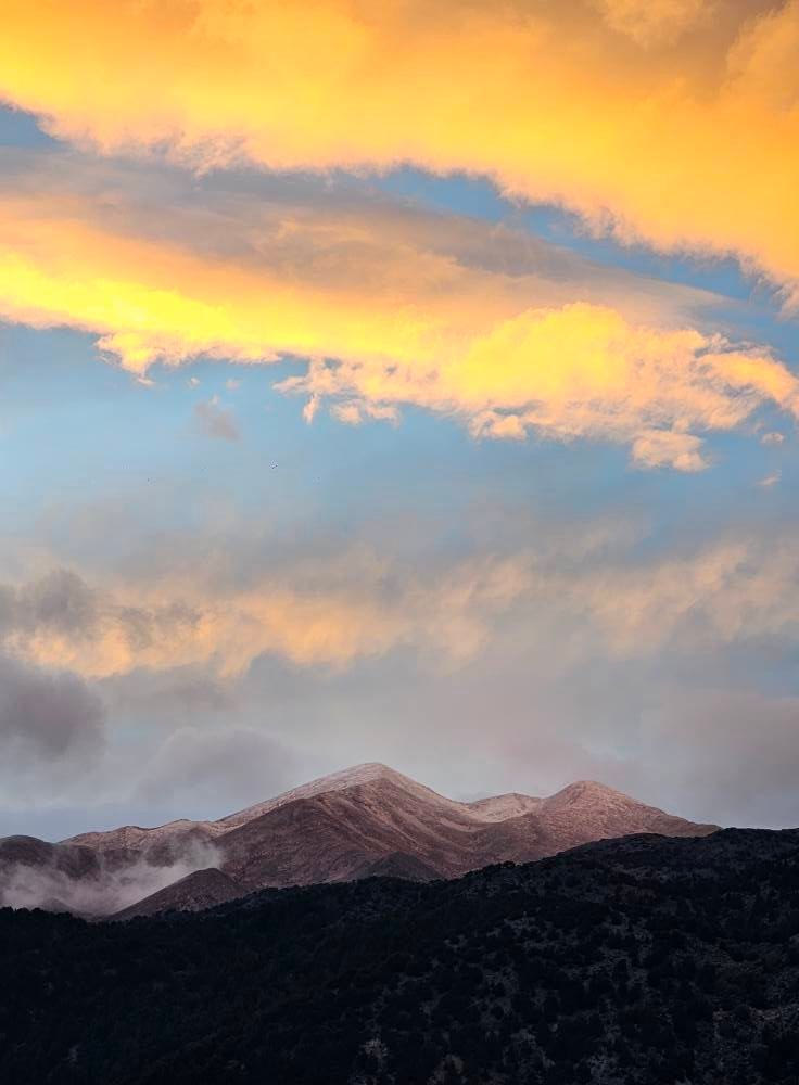 Στα Λευκά Όρη και στον Ψηλορείτη έπεσαν τα πρώτα χιόνια, ωστόσο ακόμα η χιονόστρωση στα βουνά του νησιού είναι μικρή.