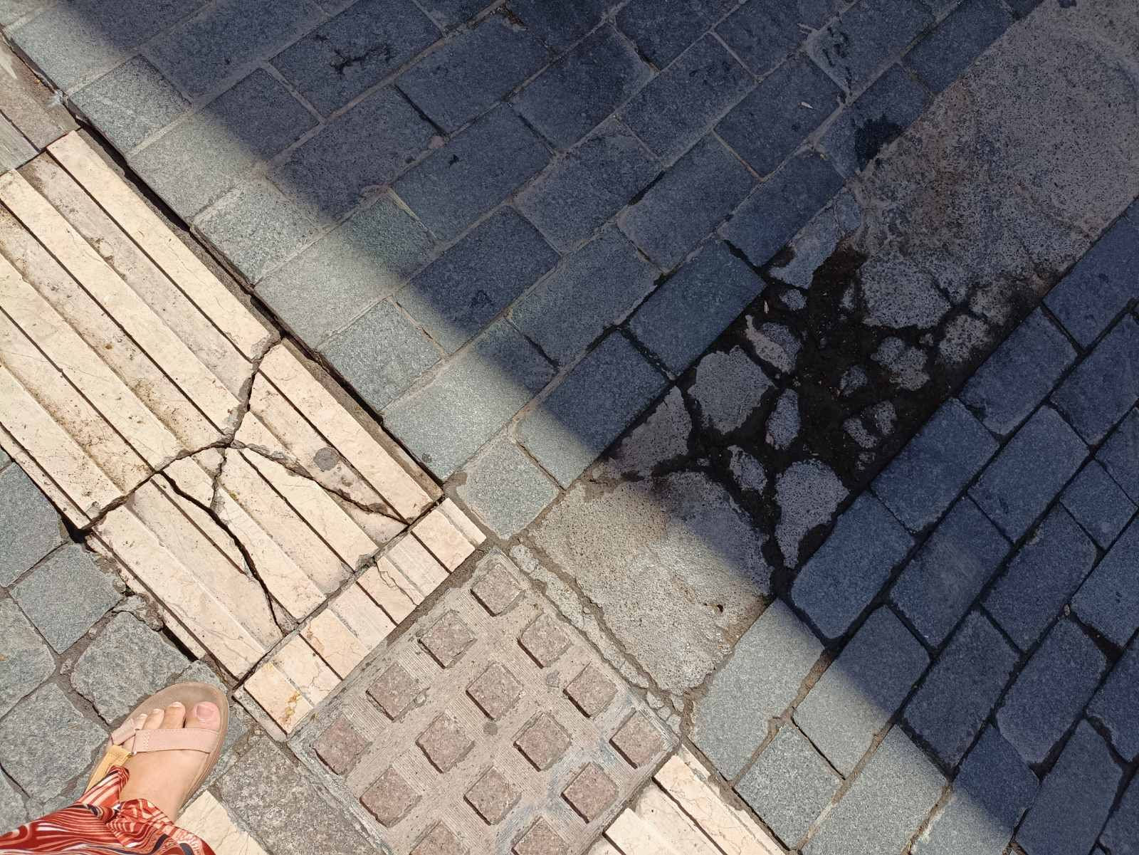 Τα πεζοδρόμια σε πολλά σημεία του κέντρου του Ηρακλείου μοιάζουν σαν… βομβαρδισμένα, μετατρέποντας σε… επικίνδυνη αποστολή μια απλή βόλτα για ντόπιους και επισκέπτες. Σκεφτείτε κάποιος άνθρωπος με ένα αναπηρικό καροτσάκι να θέλει να περιηγηθεί στην πόλη, πόσο πιο δύσκολο γίνεται το έργο του.