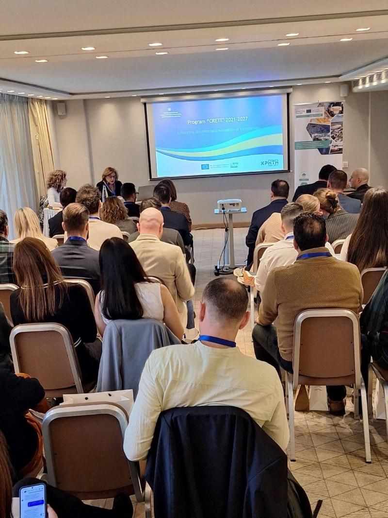 Στη συνέχεια, η Προϊσταμένη της Ειδικής Υπηρεσίας Διαχείρισης (ΕΥΔ) του Περιφερειακού Επιχειρησιακού Προγράμματος «Κρήτη», Μαρία Κασωτάκη, παρουσίασε το πλαίσιο υλοποίησης του Προγράμματος «Κρήτη 2021‑2027», εστιάζοντας στις δράσεις για την ενίσχυση της εξωστρέφειας των επιχειρήσεων.