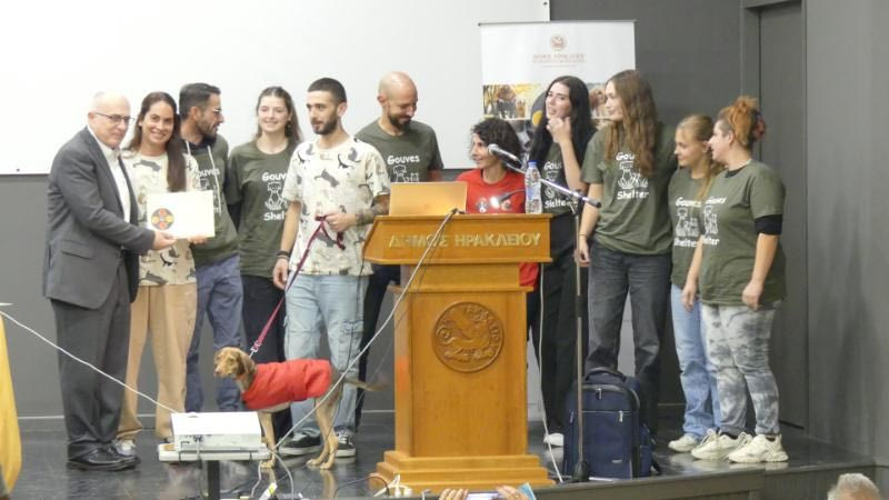 Η ημερίδα ολοκληρώθηκε με τη βράβευση από τον Ειδικό Γραμματέα για την προστασία Ζώων Συντροφιάς κ. Χρυσάκη Νικόλαο των ακόλουθων σωματείων, εθελοντών και πολιτών για την «Προσφορά και συνεργασία τους στην Διάσωση αδέσποτων Ζώων συντροφιάς και την συμπαράσταση τους στο Κυνοκομείο του Δήμου Ηρακλείου»: