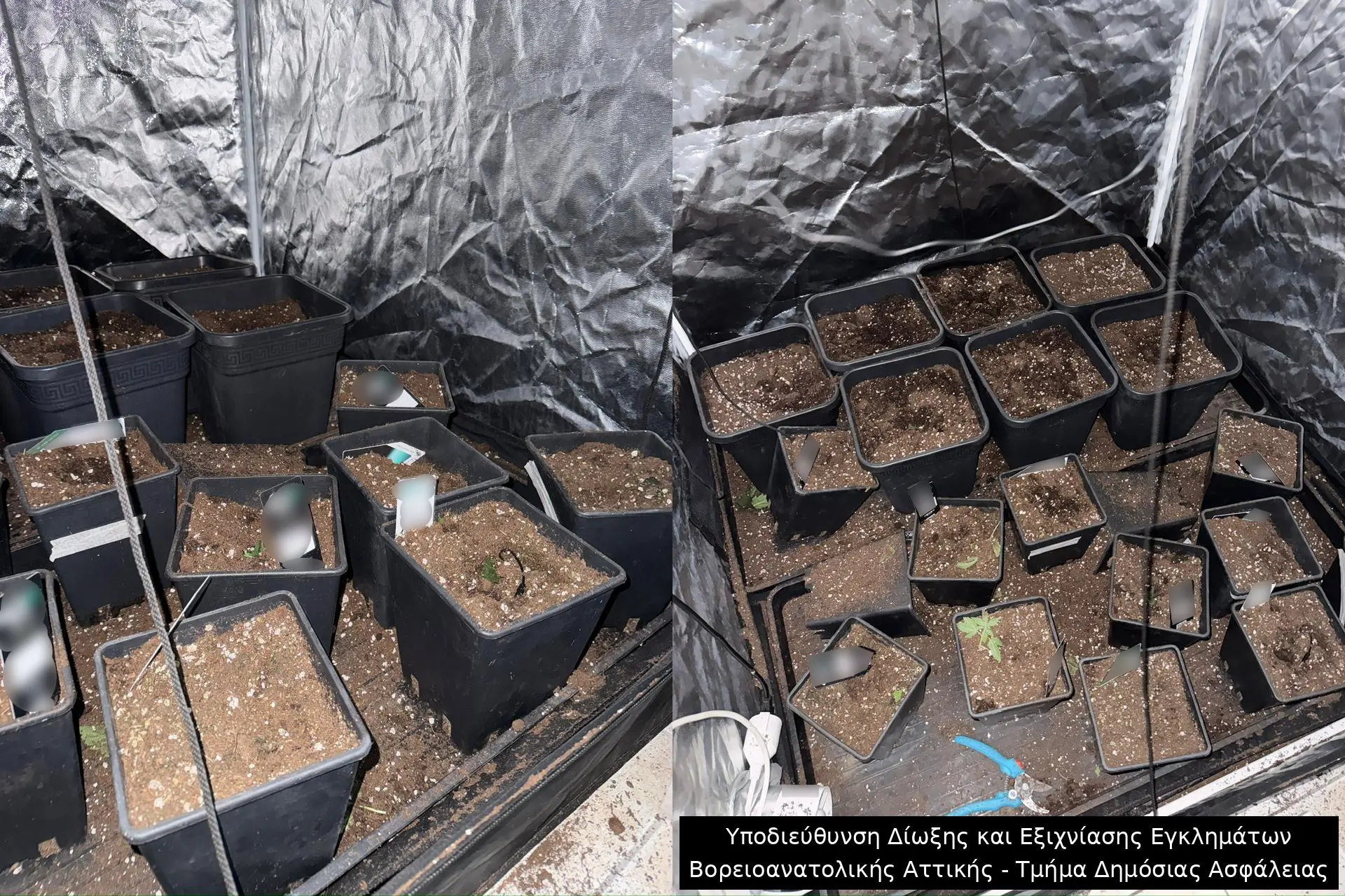 Παράλληλα, η 32χρονη και ο 46χρονος εντοπίστηκαν να δραστηριοποιούνται στην καλλιέργεια και διακίνηση κάνναβης, καθώς στην οικία τους βρέθηκαν 20 εκριζωμένα δενδρύλλια κάνναβης, 215 γραμμάρια ακατέργαστης κάνναβης, 400 γραμμάρια υπολείμματα δενδρυλλίων, 27 γλάστρες, πλήρης εξοπλισμός εργαστηρίου, ζυγαριά ακριβείας, δύο τρίφτες, 500 ευρώ και 12 διαρρηκτικά κλειδιά.