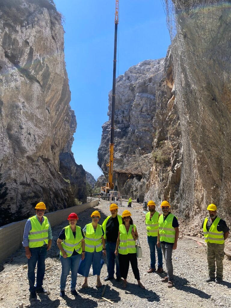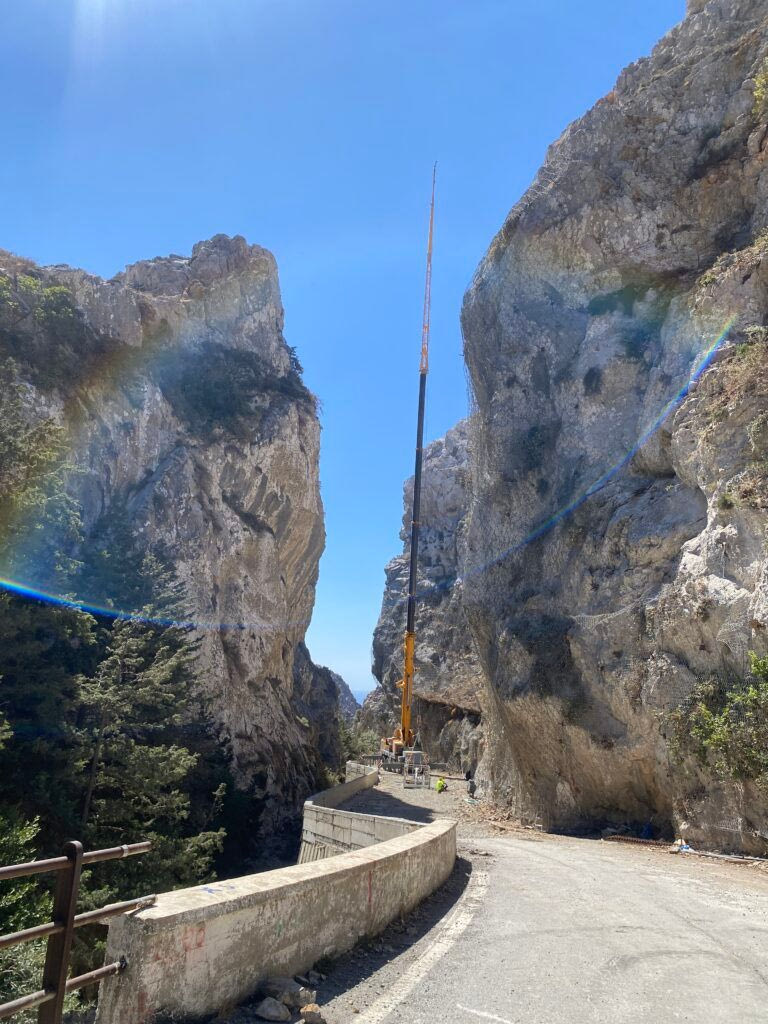Η κατασκευή των αγκυρώσεων γίνεται με μηχανικό εξοπλισμό κινούμενο στο δάπεδο εργασίας (γερανό), με εξειδικευμένο προσωπικό αναρριχητές/ εναερίτες και οι εργασίες αγκυρώσεων εκτελούνται σε δύο βάρδιες ημερησίως, προκειμένου να επιτυγχάνεται μεγαλύτερος αριθμός αγκυρώσεων. Η Αντιπεριφερειάρχης Μαρία Λιονή, δήλωσε ότι, “Παρά τις δυσκολίες που προκύπτουν καθημερινά, το έργο έχει εκτελεστεί σε ικανοποιητικό βαθμό και είμαστε αρκετά ευχαριστημένοι. Τα συνεργία εργάζονται καθημερινά σε δύο βάρδιες και υπάρχει δυνατότητα να γίνουν τρεις οι βάρδιες στο προσεχές διάστημα με όλες τις καιρικές συνθήκες. Στόχος όλων μας είναι το έργο να παραδοθεί στον συντομότερο δυνατό χρόνο”.