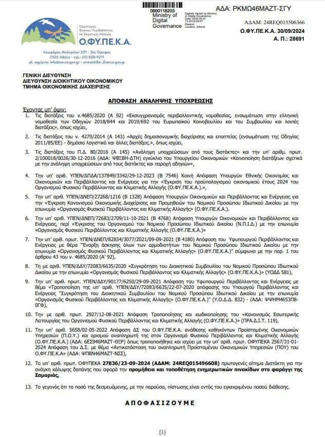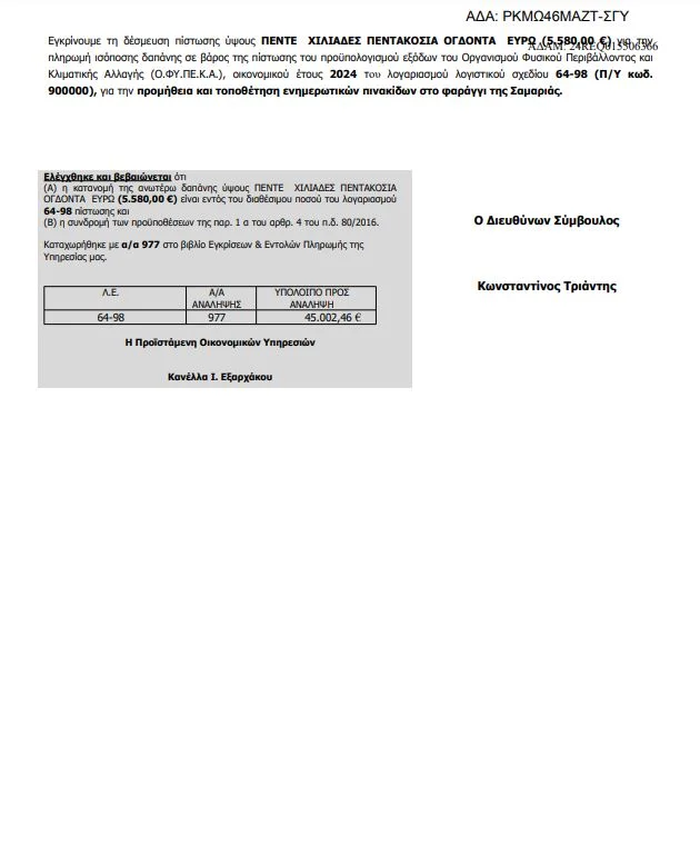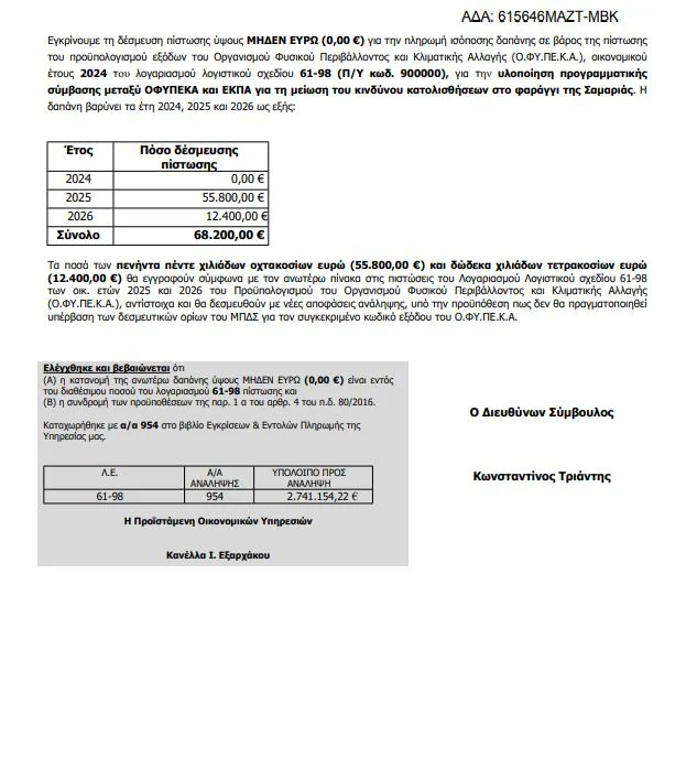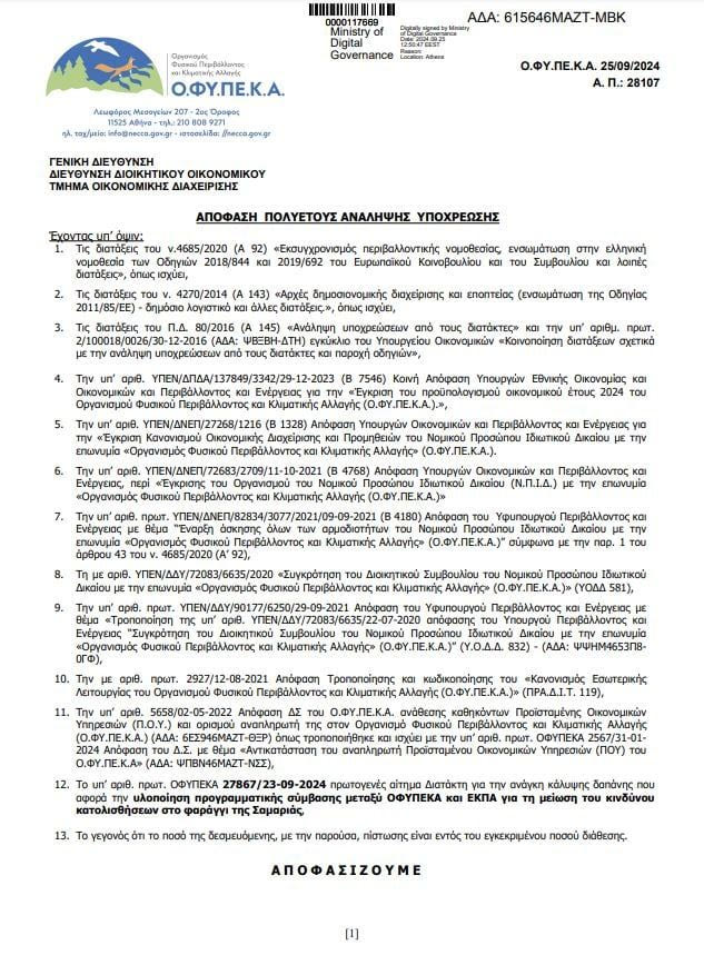 H δαπάνη για την μελέτη ανέρχεται στα 68.200 ευρώ, όπως αναφέρεται και στην απόφαση που αναρτήθηκε στην Διαύγεια.