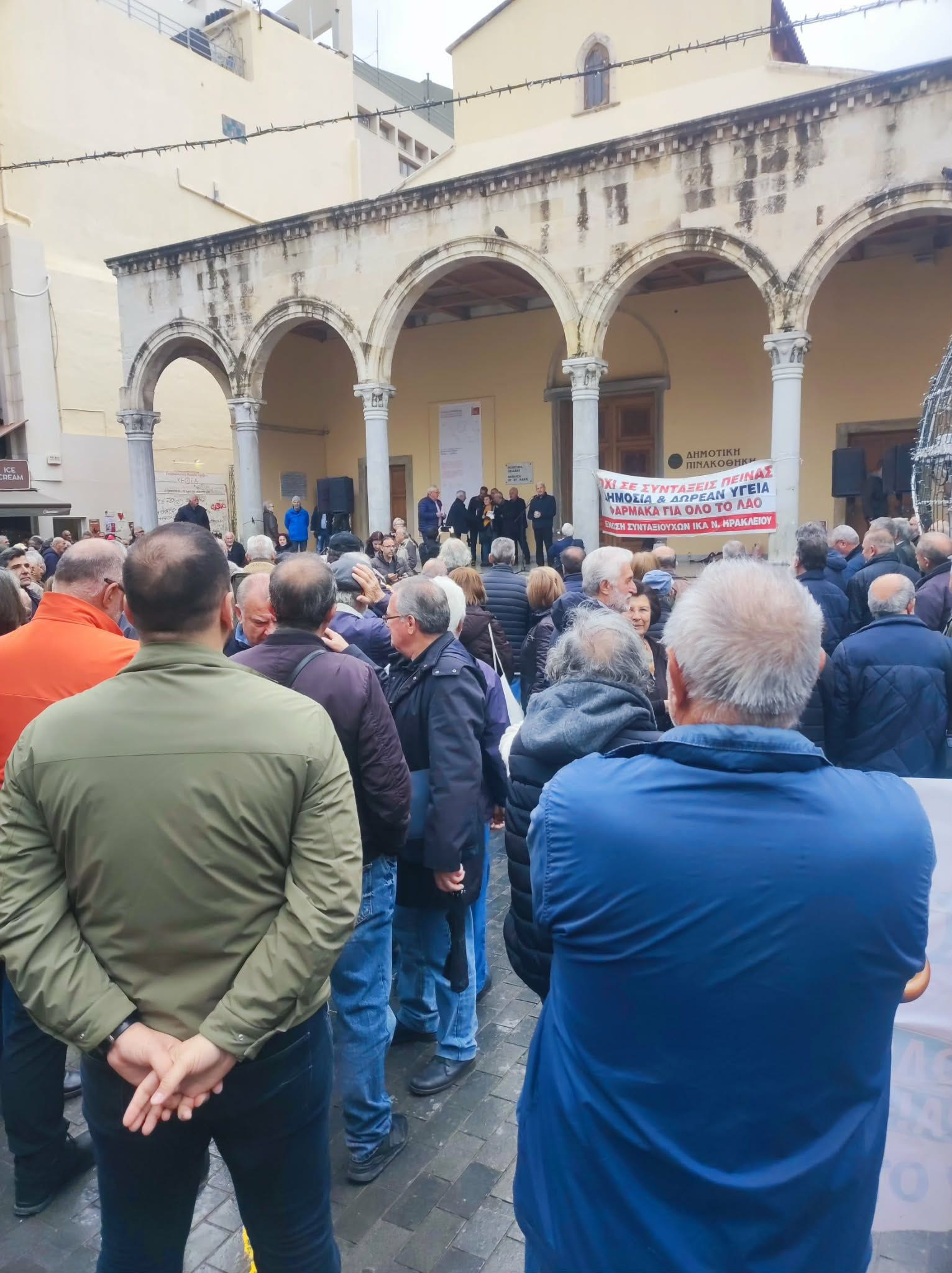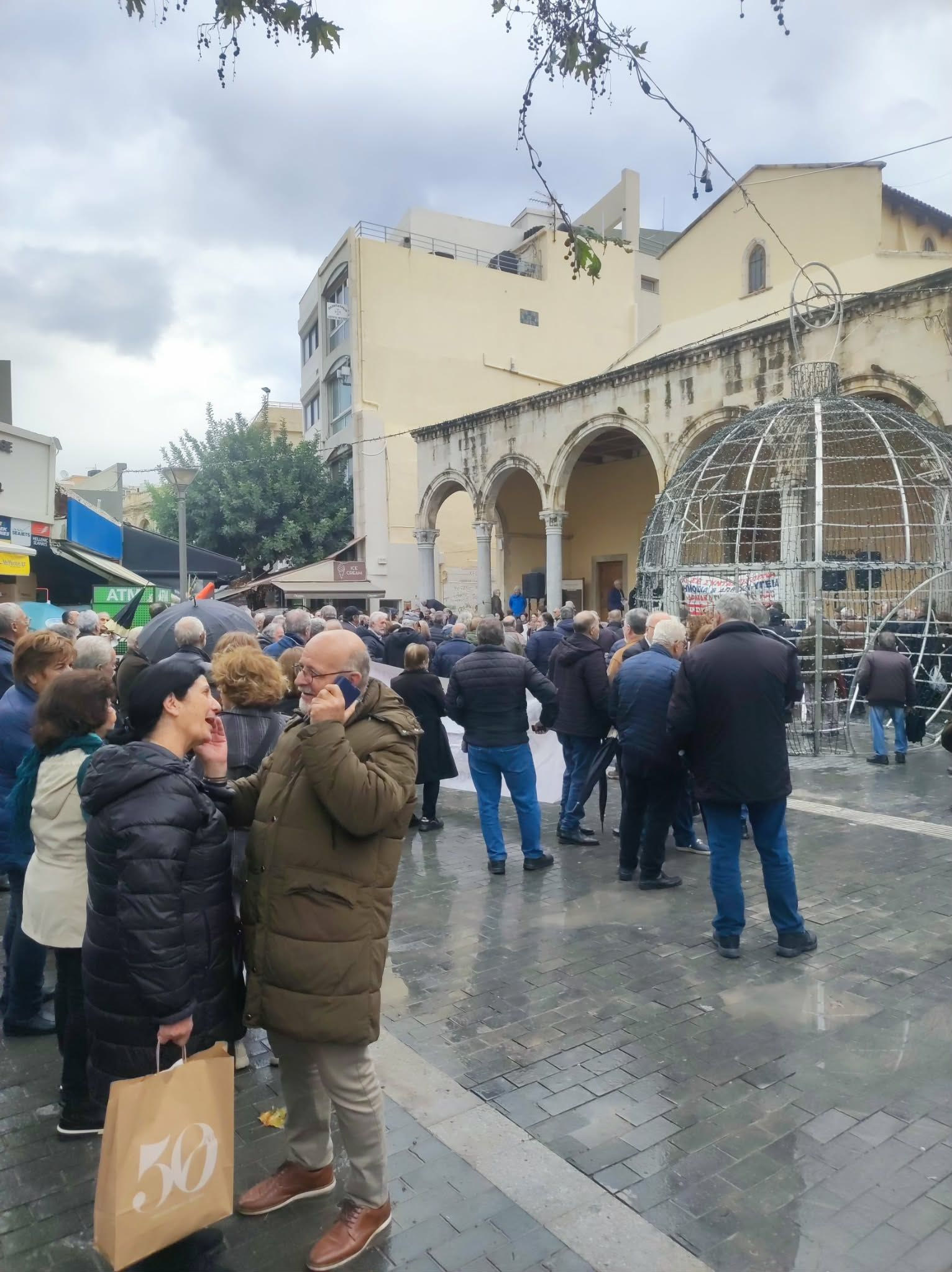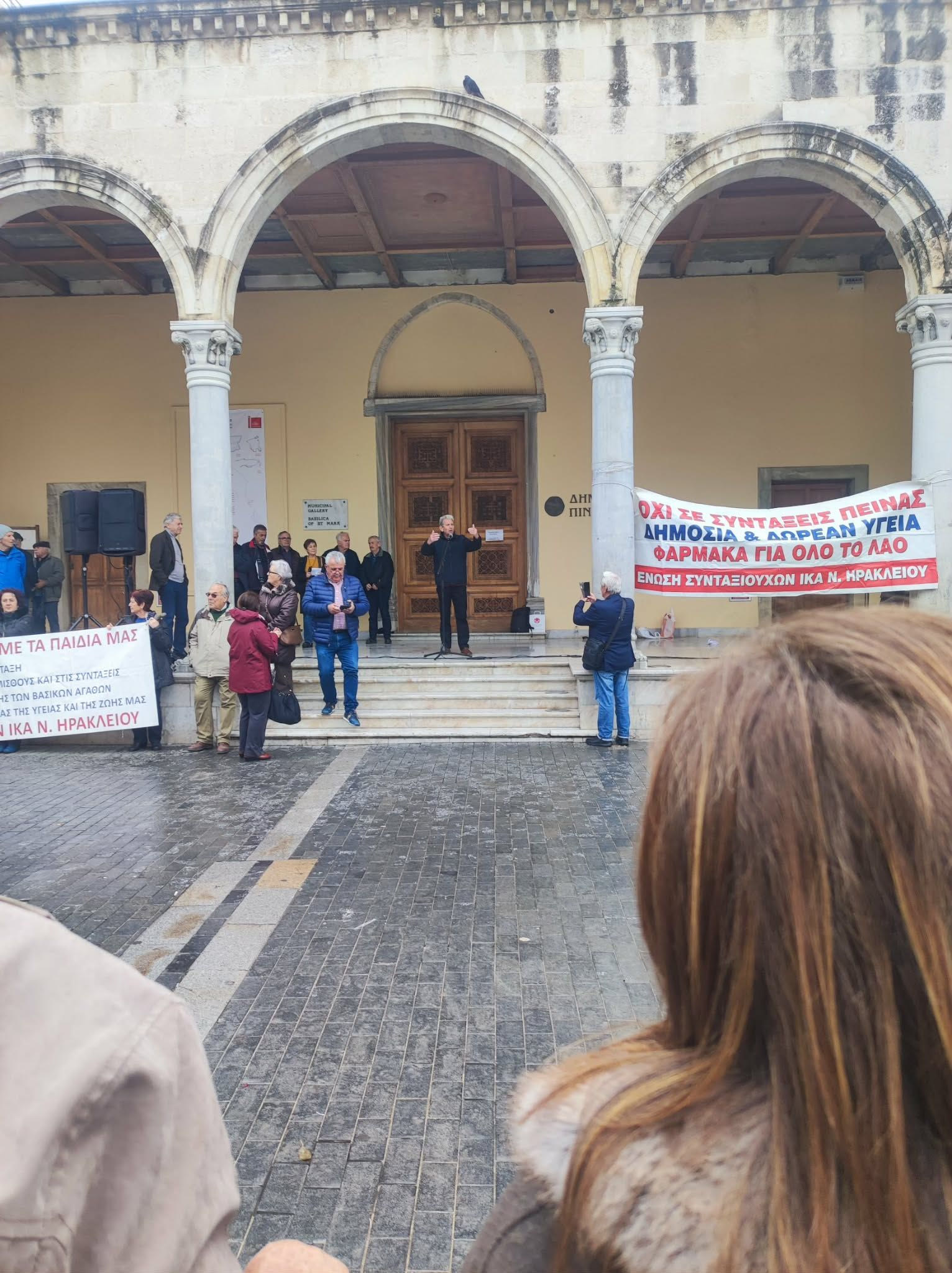 Δίχως να πτοηθούν καθόλου από την έντονη βροχόπτωση, οι συνταξιούχοι από κάθε γωνιά της Κρήτης, συγκεντρώθηκαν σήμερα στην Πλατεία Λιονταριών στο Ηράκλειο, προκειμένου να διαδηλώσουν για τα αιτήματά τους.
