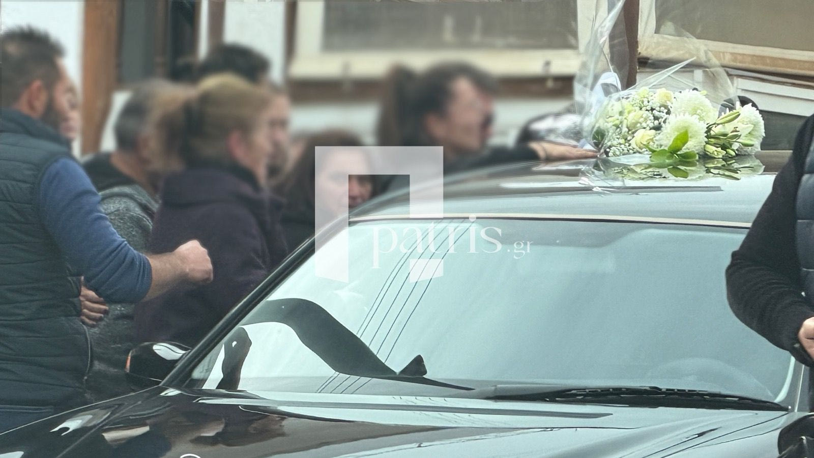 Φίλοι, συγγενείς και πλήθος κόσμου που βρίσκονταν στο σημείο «λύγισαν» στη θέα της νεκροφόρας ενώ κάποιοι άφησαν ένα μπουκέτο με λευκά λουλούδια πάνω στο όχημα.