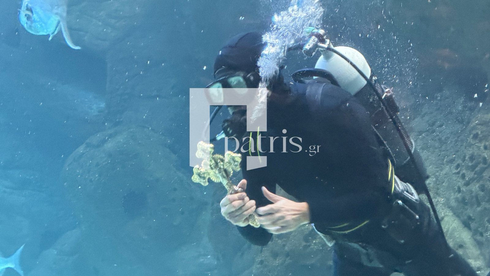 Παράλληλα, δύτες έχουν βουτήξει στο Ενυδρείο για να πιάσουν τον σταυρό.