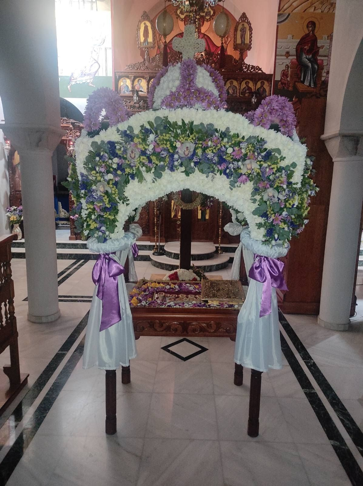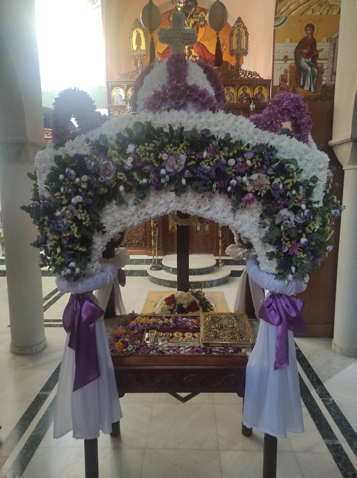 Όπως κάθε χρόνο, έτσι και φέτος ο Επιτάφιος που στολίστηκε από τις μοναχές, είναι μεγαλοπρεπής και εντυπωσιακός.