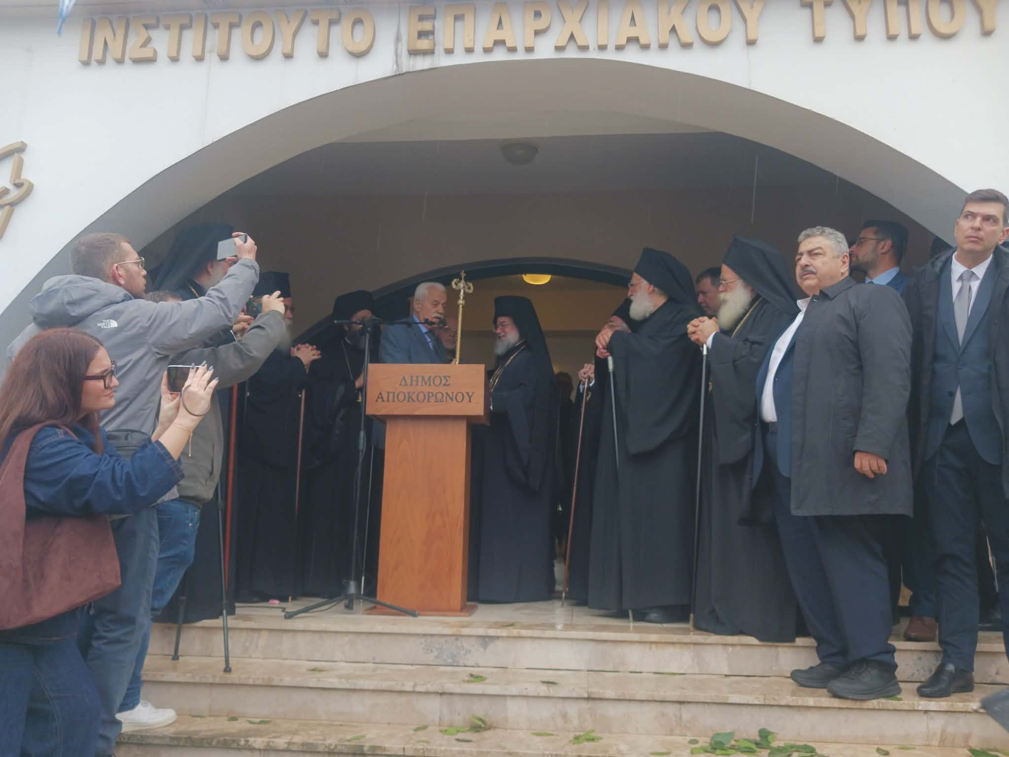 Τον σεβασμιότατο υποδέχτηκαν σε κλίμα χαράς και γιορτής, στον χώρο του ιδρύματος Αγίας Σοφίας, η δημοτική αρχή Αποκορώνου, αιρετοί, κλήρος και πλήθος πιστών.