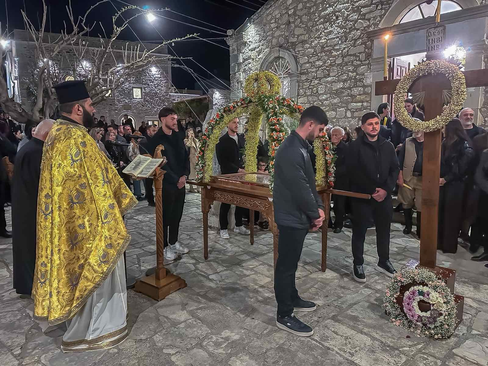 Έτσι και φέτος πλήθος πιστών έδωσε το παρών στην ακολουθία του Επιταφίου και στην περιφορά που ακολούθησε στους δρόμους του χωριού.