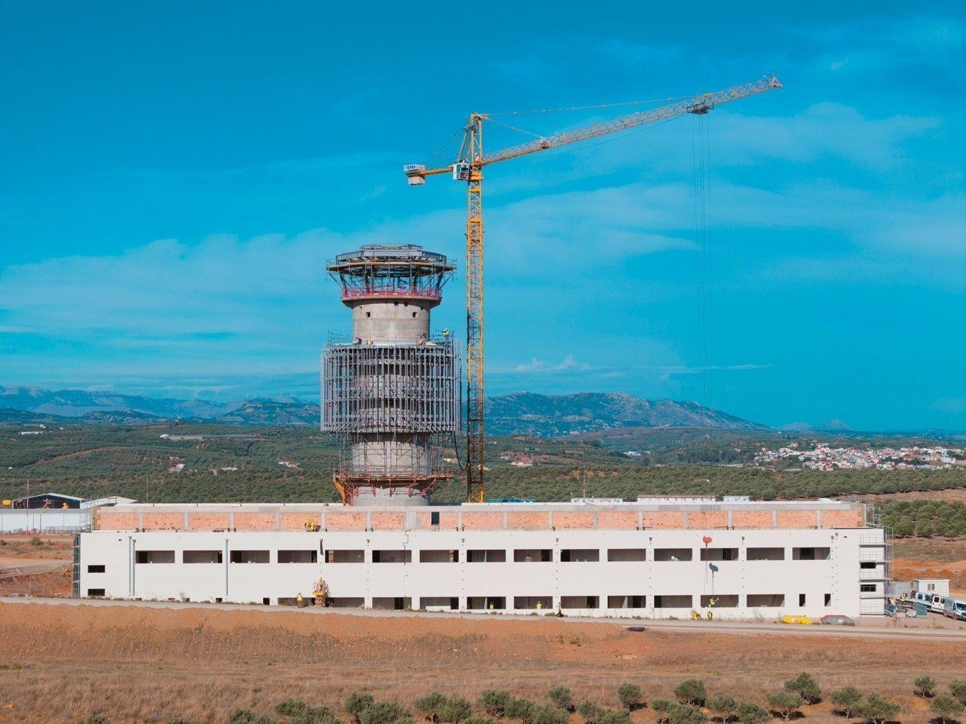 ■ Πύργο ελέγχου 4.850 τ.μ. και ύψους 44 μ., ο οποίος προβλέπεται να παραδοθεί στην ΥΠΑ την άνοιξη του 2026 προκειμένου να τοποθετηθούν τα μηχανήματα αεροναυτιλίας.