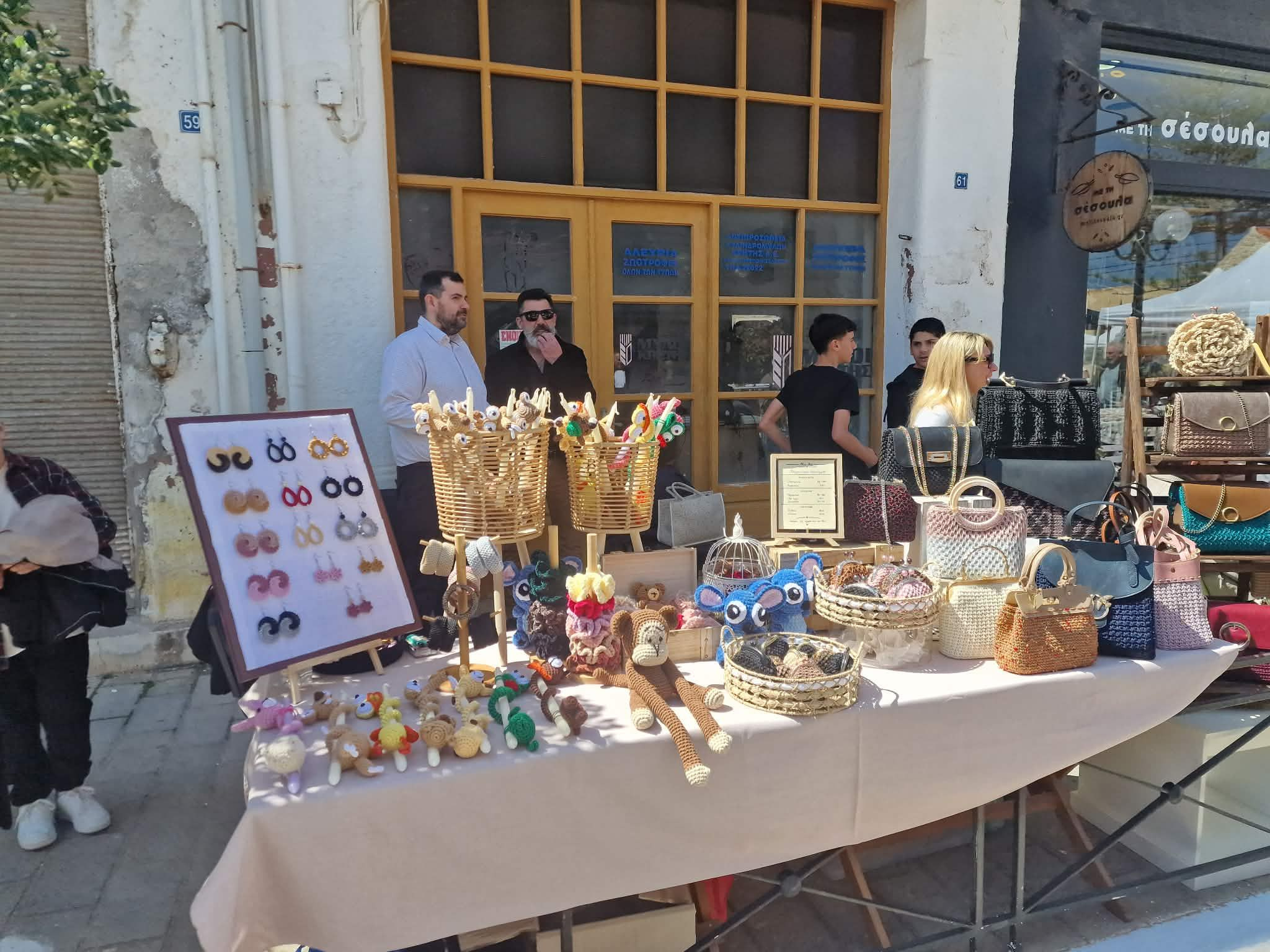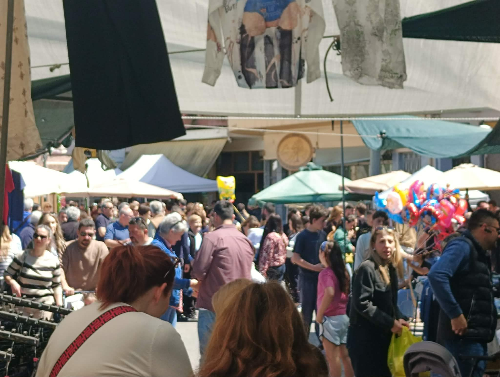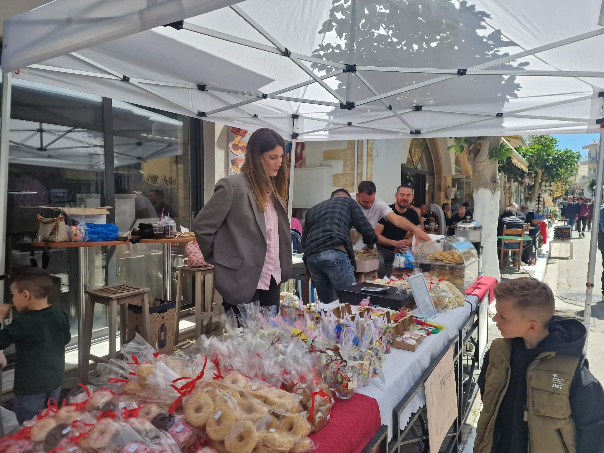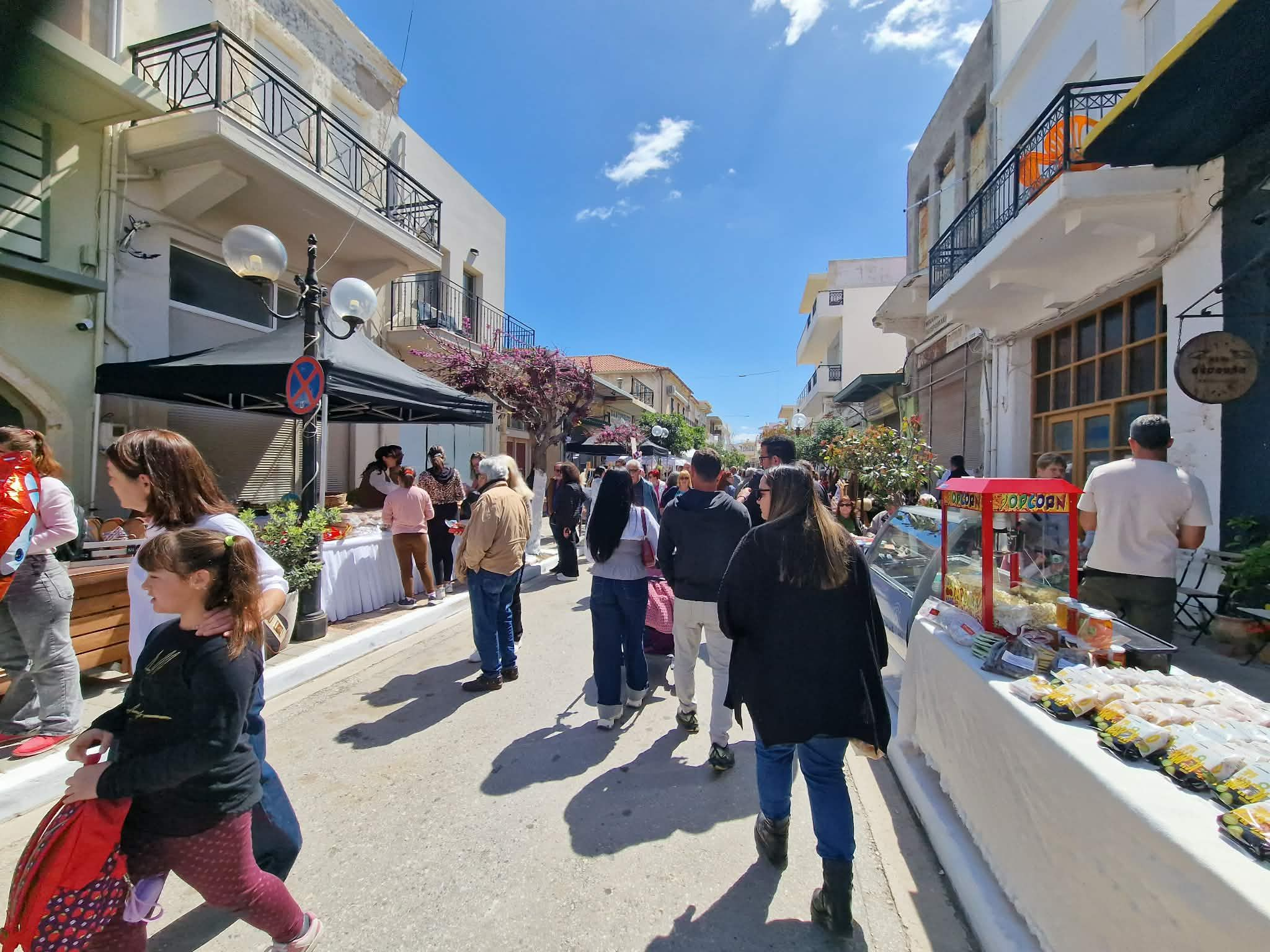 Από νωρίς στήθηκαν οι πάγκοι με κρητικά προϊόντα, ρούχα και πασχαλινά είδη.