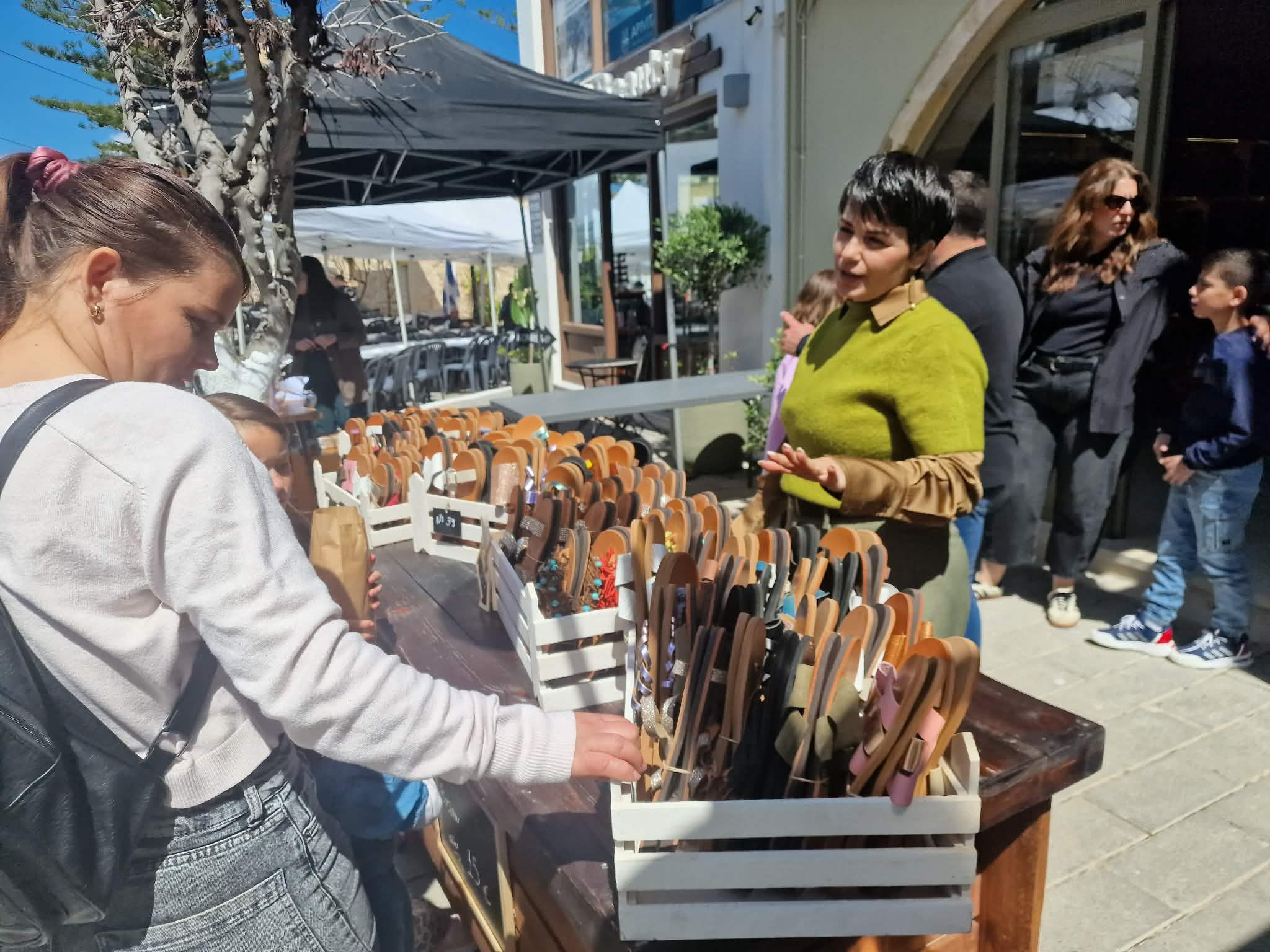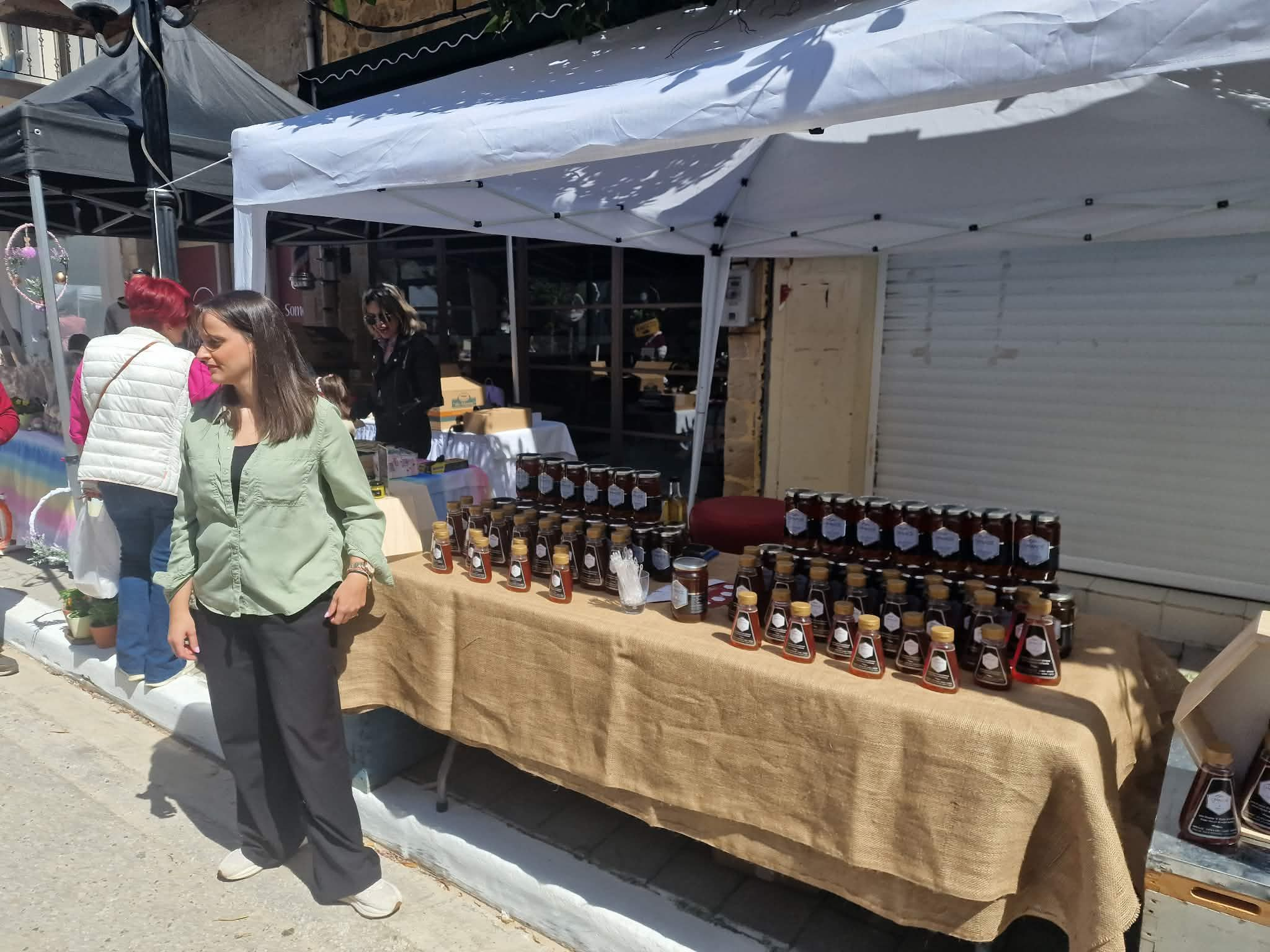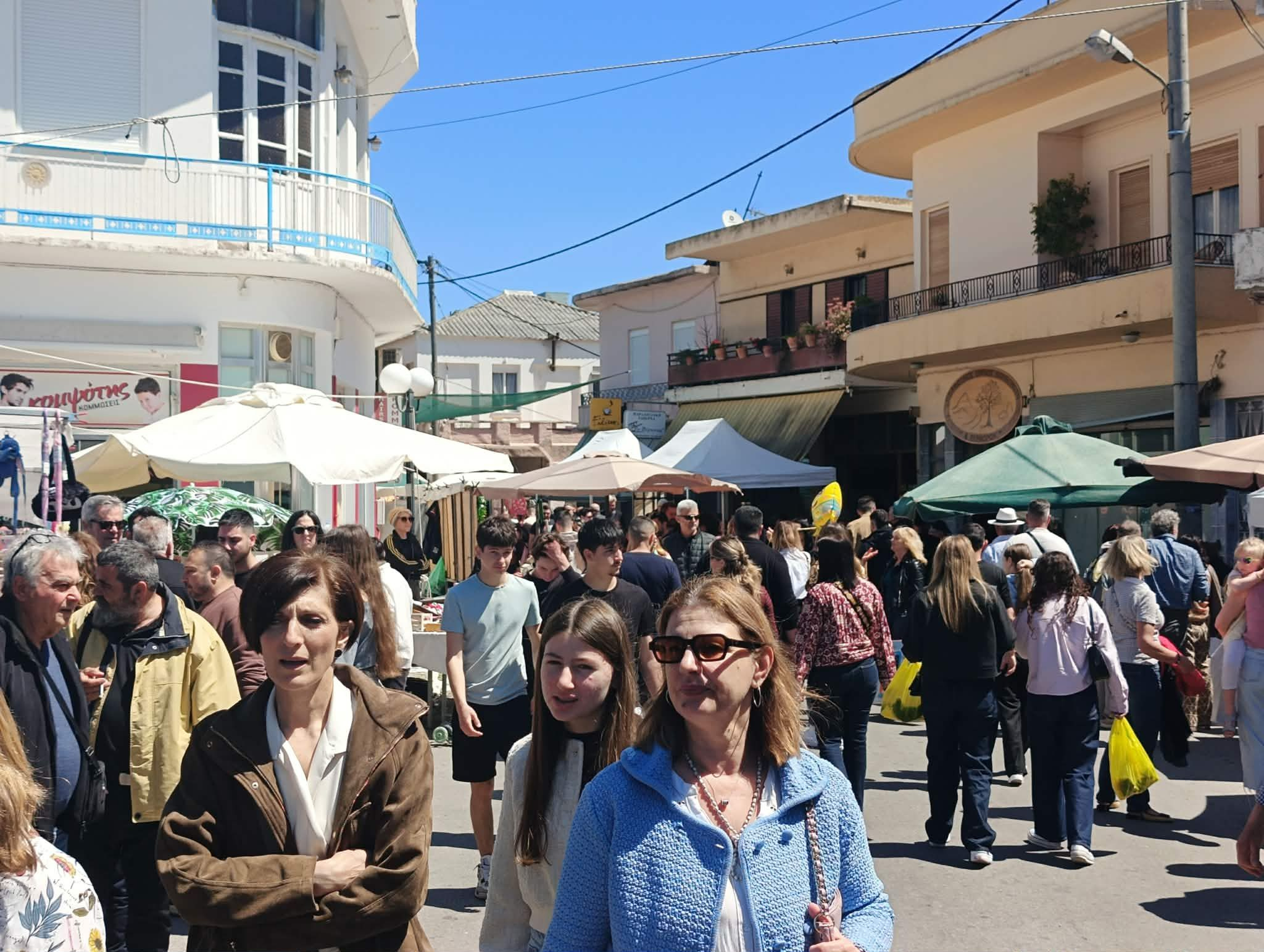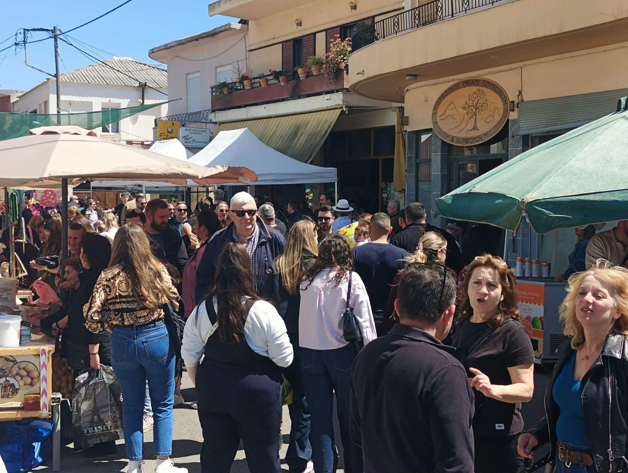 Από νωρίς στήθηκαν οι πάγκοι με κρητικά προϊόντα, ρούχα και πασχαλινά είδη.