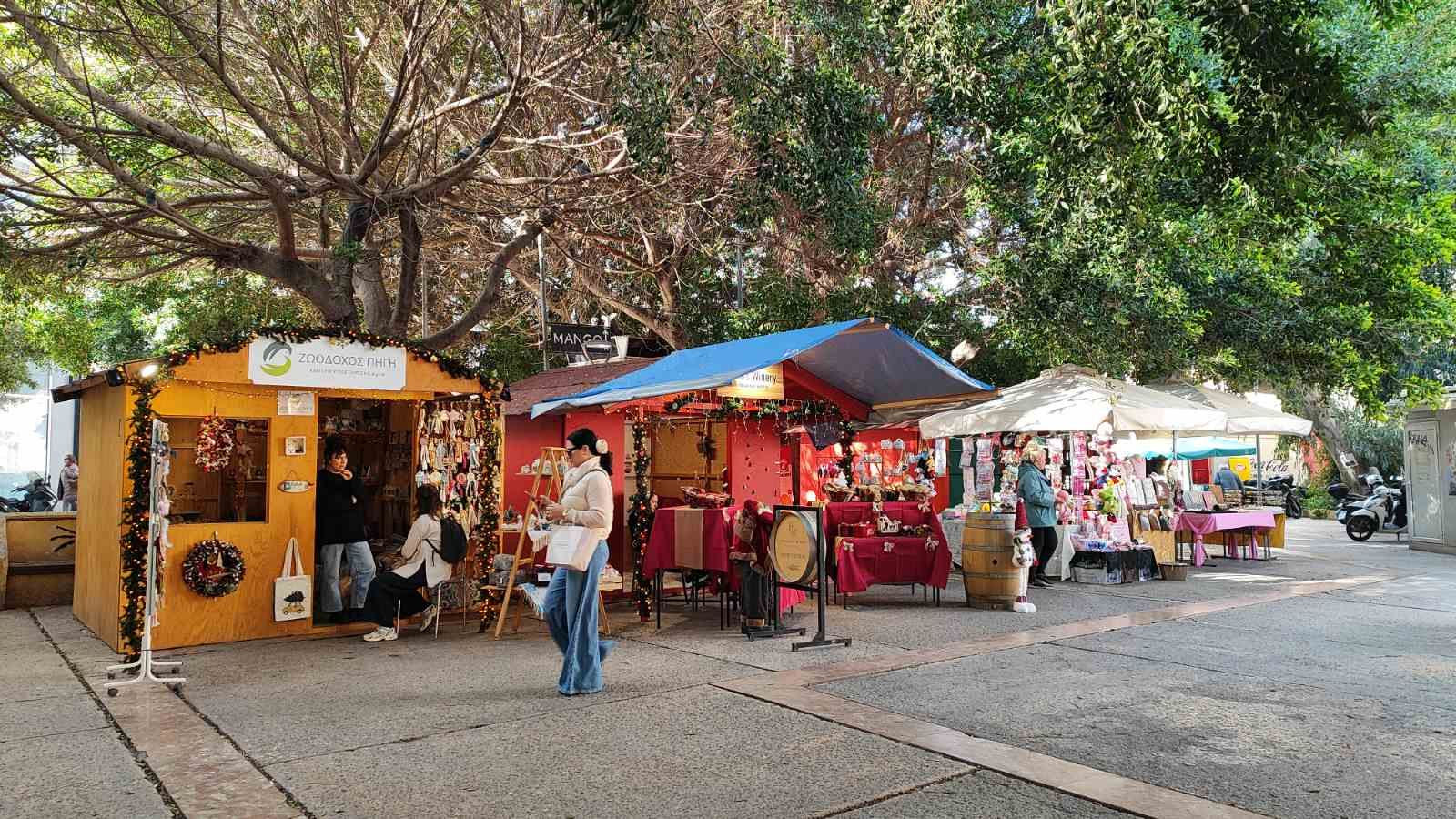 Η Χριστουγεννιάτικη αγορά με τα ξύλινα σπιτάκια που έχει στηθεί στους κεντρικούς δρόμους του κέντρου πουλούν από ζαχαρωτά, παστέλια και ζεστά ροφήματα μέχρι διακοσμητικά και είδη ένδυσης.