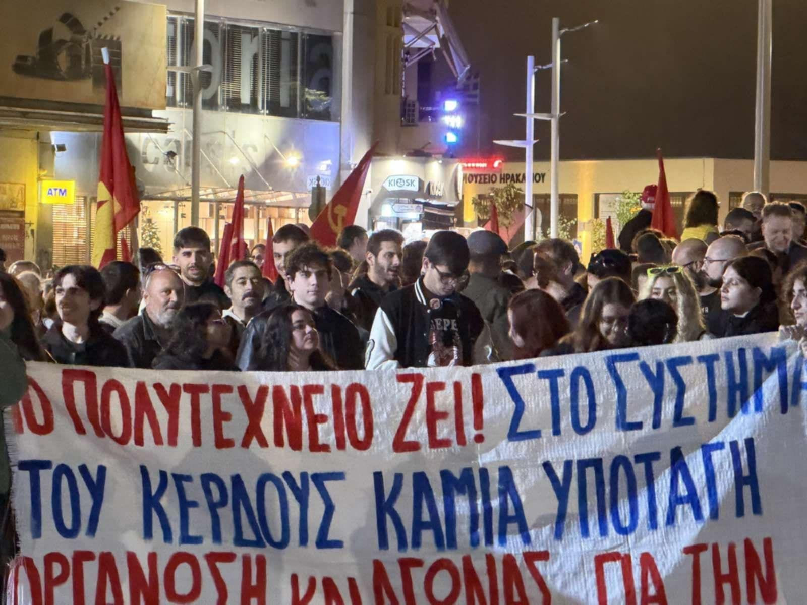 Ολοκληρώθηκαν οι συγκεντρώσεις για την επέτειο του Πολυτεχνείου στο κέντρο του Ηρακλείου.