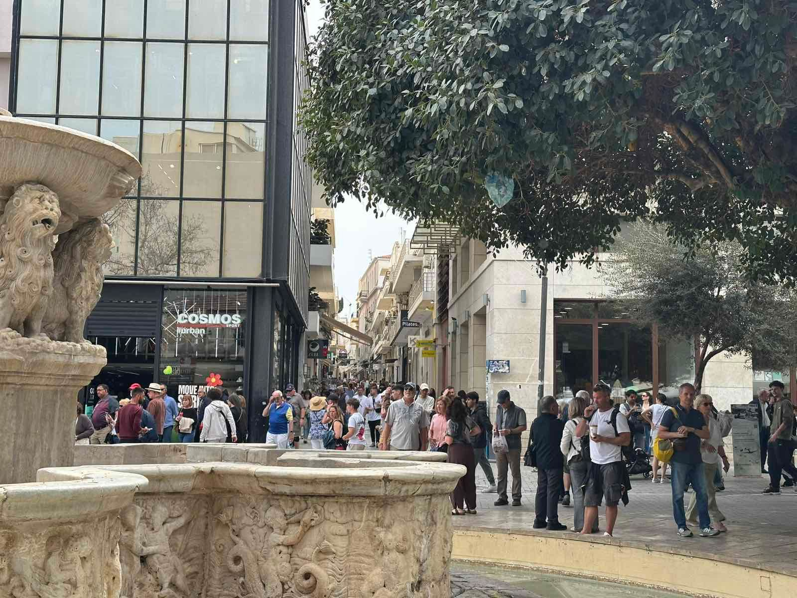 Δυναμικό παρών έδωσαν φυσικά και οι τουρίστες από τα κρουαζιερόπλοια που …συρρέουν πλέον στο λιμάνι του Ηρακλείου.