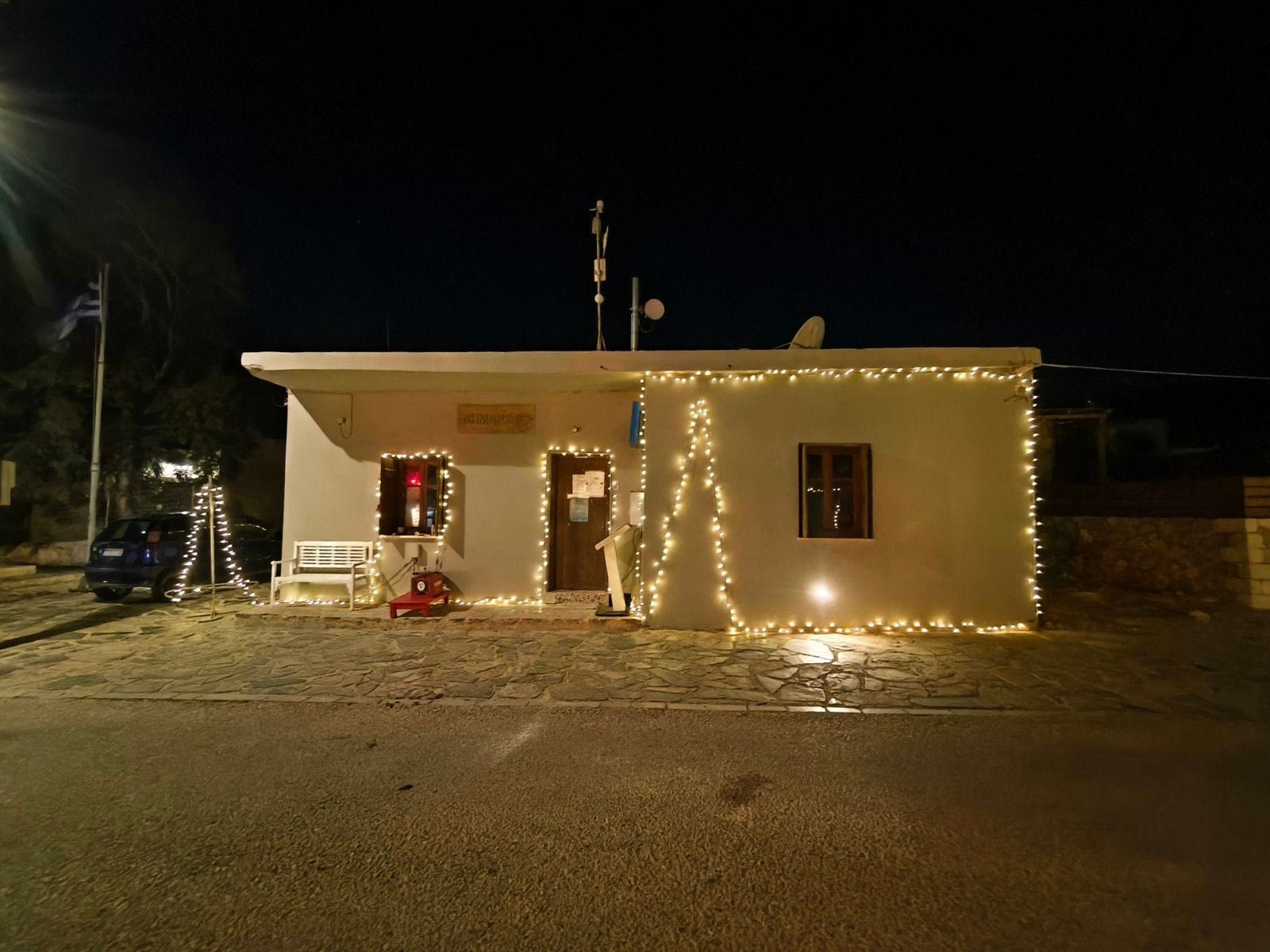 Το γνωστό καραβάκι της Γαύδου στολίστηκε και ξεχωρίζει για άλλη μια χρονιά. Γιορτινά λαμπιόνια κοσμούν το δημαρχείο του ακριτικού νησιού και διάφορες γωνιές του.
