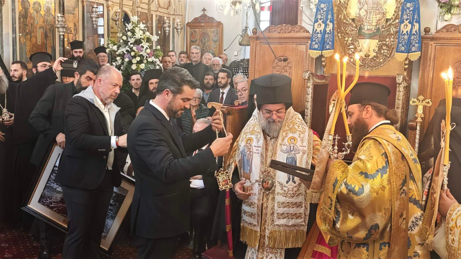 Πριν φτάσει στον ιερό ναό των Εισοδίων της Θεοτόκου για την ενθρόνισή του, ο νέος ποιμενάρχης, πραγματοποίησε στάση στο δήμο Αποκορώνου.