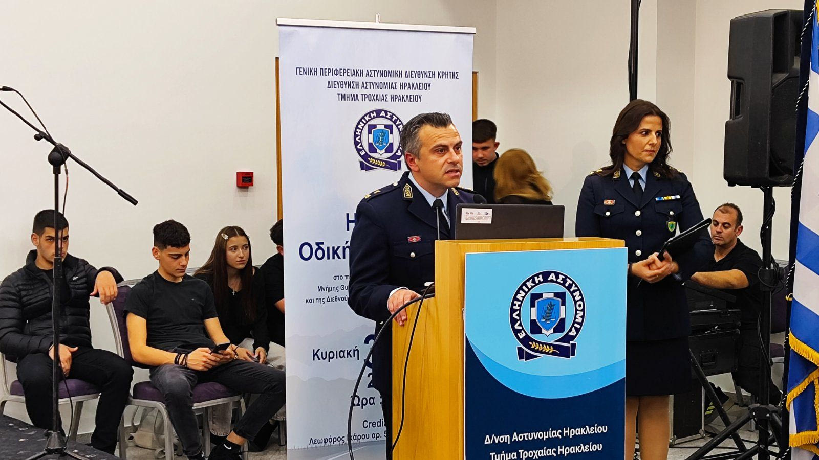 Η Ημερίδα περιλαμβάνει Έκθεση Φωτογραφίας, πρώτη προβολή – παρουσίαση του τραγουδιού με τίτλο “Άγγελος στη Γη” που έγραψε ο διοικητής της Τροχαίας Ηρακλείου, Στέλιος Καρακούδης και είναι αφιερωμένο στη μνήμη των θυμάτων της ασφάλτου, θεατρική παράσταση από μαθητές του 6ου ΕΠΑΛ Ηρακλείου, και ομιλίες από ειδικούς στο πεδίο της οδικής ασφάλειας.