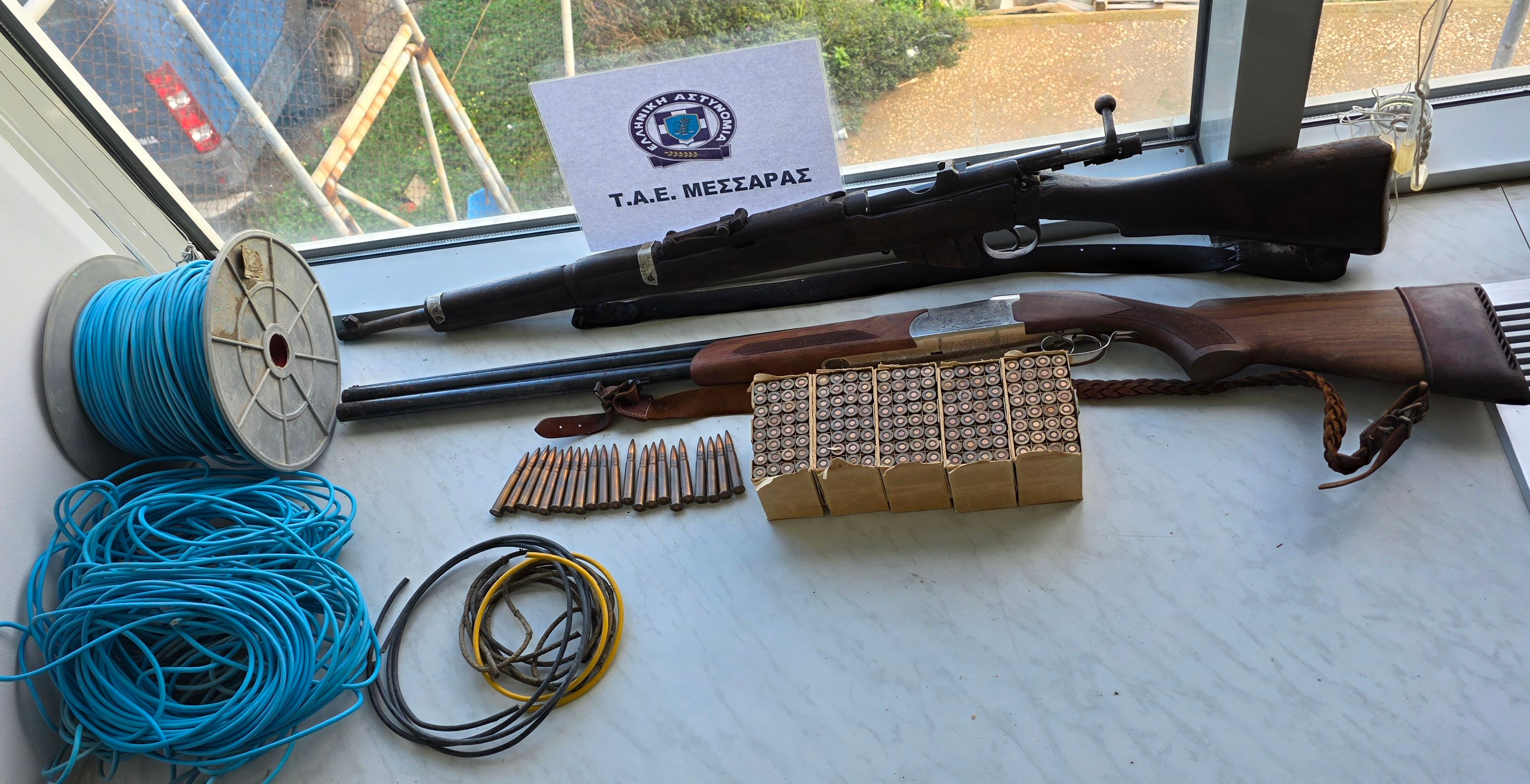Στο πλαίσιο των δράσεων για την αντιμετώπιση της οπλοκατοχής και μετά από αξιοποίηση πληροφοριών του Τμήματος Αστυνομικών Επιχειρήσεων Μεσσαράς, αστυνομικοί της ανωτέρω υπηρεσίας πραγματοποίησαν σήμερα (03.02.2026) πρωινές ώρες έρευνα σε περιοχή του Δήμου Φαιστού όπου εντός εγκαταλελειμμένου ποιμνιοστασίου και στον περιβάλλοντα χώρο αυτού βρέθηκαν και κατασχέθηκαν:
