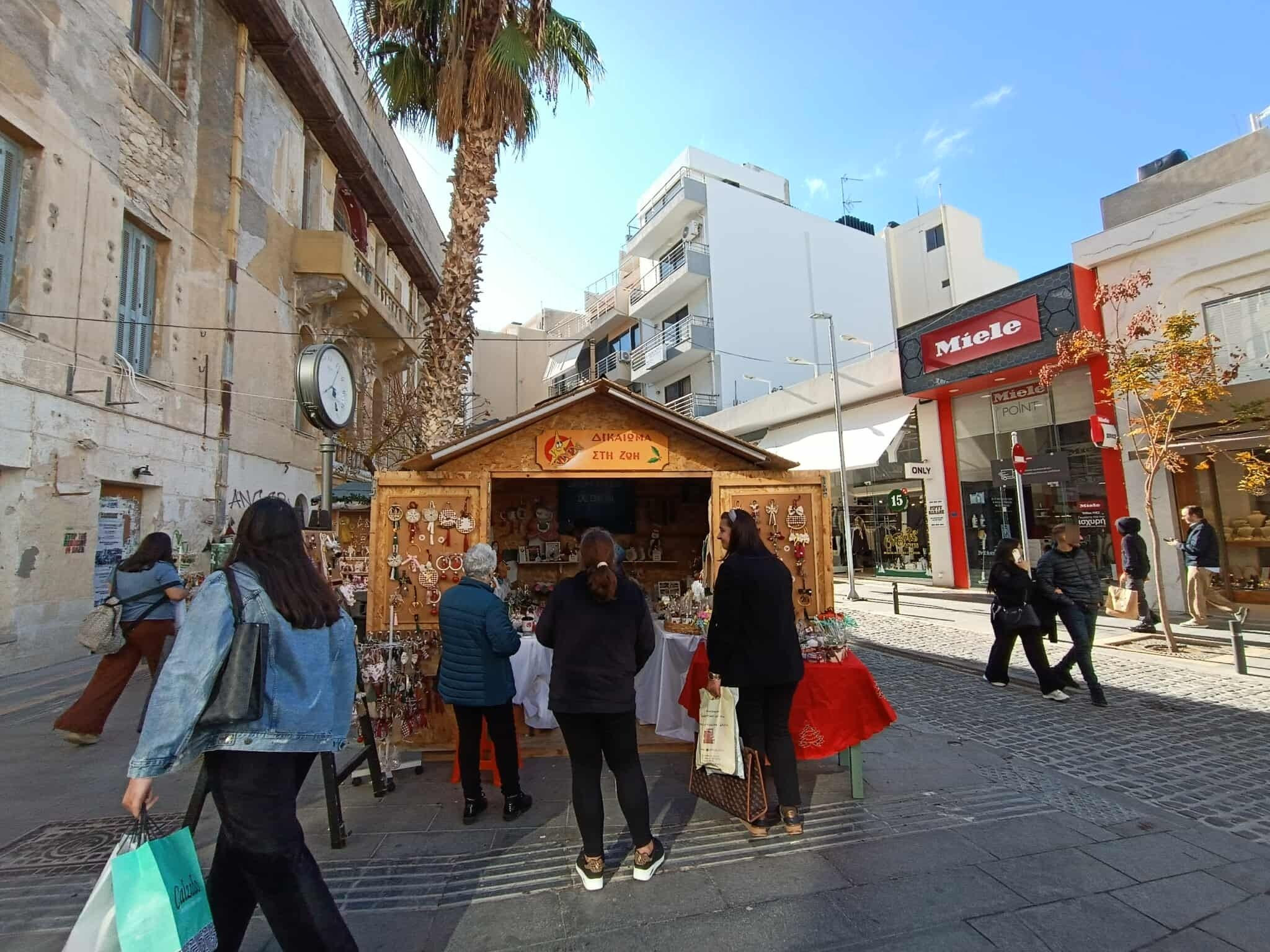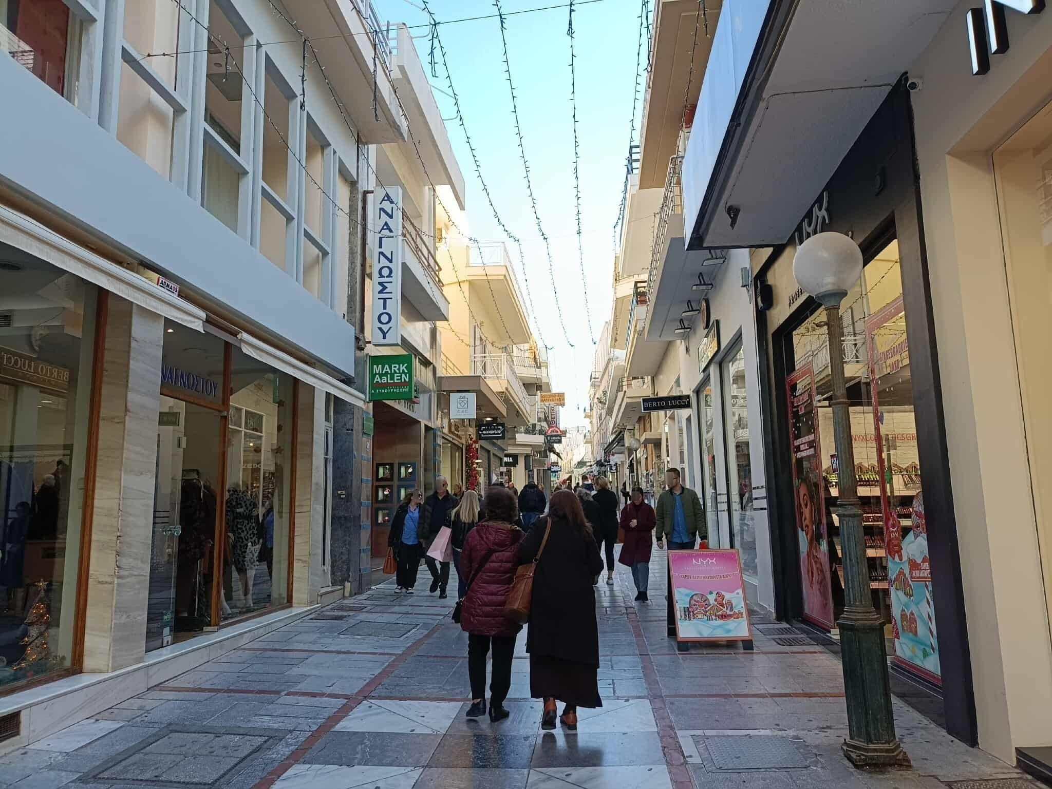 Οι δρόμοι της πόλης γέμισαν κόσμο, ενώ έντονη ήταν η παρουσία τόσο στα εμπορικά καταστήματα όσο και στα καφέ του κέντρου. Η εορταστική περίοδος έχει ξεκινήσει, και παρά το ασυνήθιστα ζεστό σκηνικό για την εποχή, το κλίμα στο Ηράκλειο παραμένει γιορτινό, με τους καταναλωτές να κάνουν τις τελευταίες τους αγορές χωρίς τον χειμωνιάτικο καιρό να τους αποτρέπει.