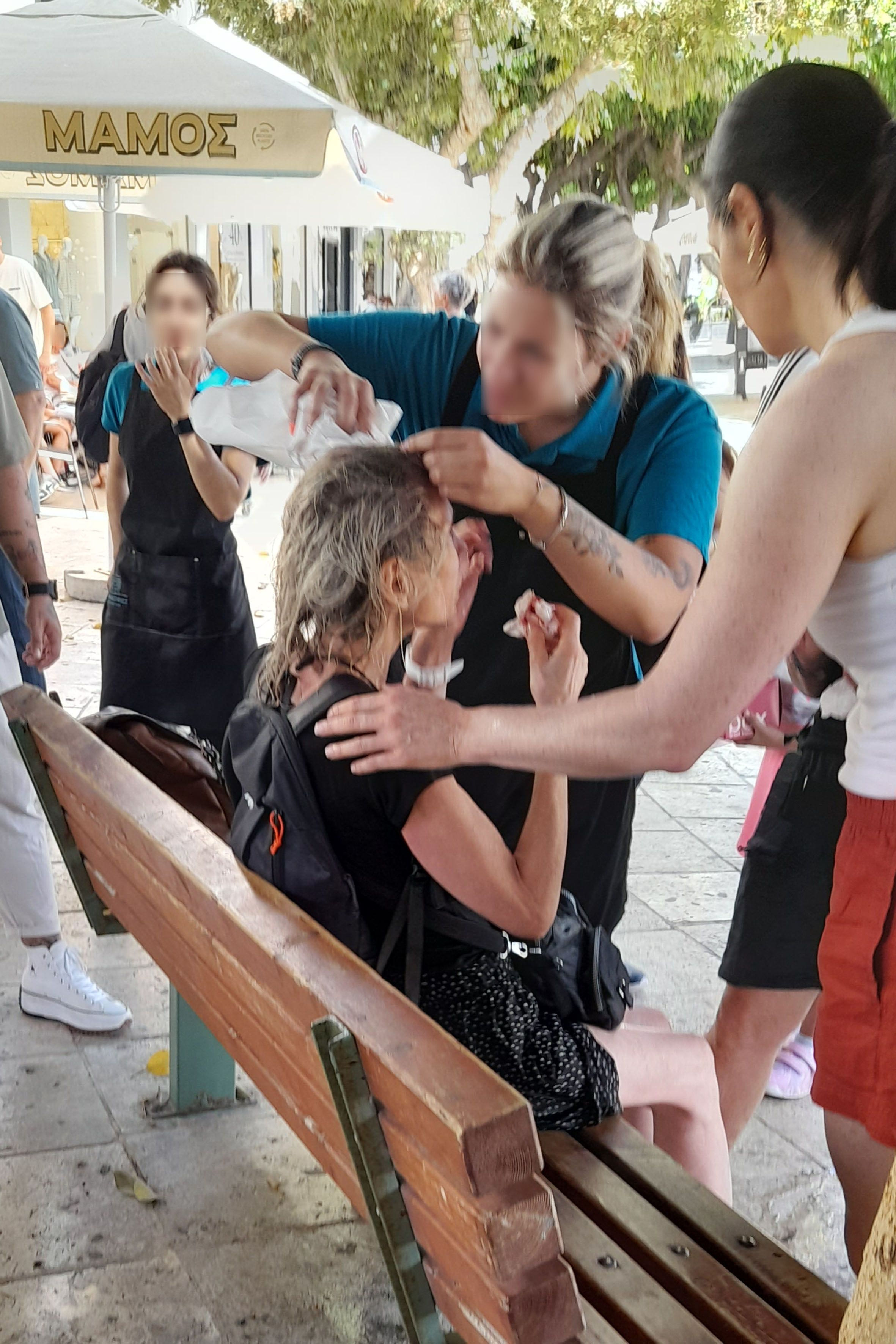 Εργαζόμενοι από καταστήματα της περιοχής έσπευσαν να βοηθήσουν την γυναίκα, παρέχοντας της τις πρώτες βοήθειες.