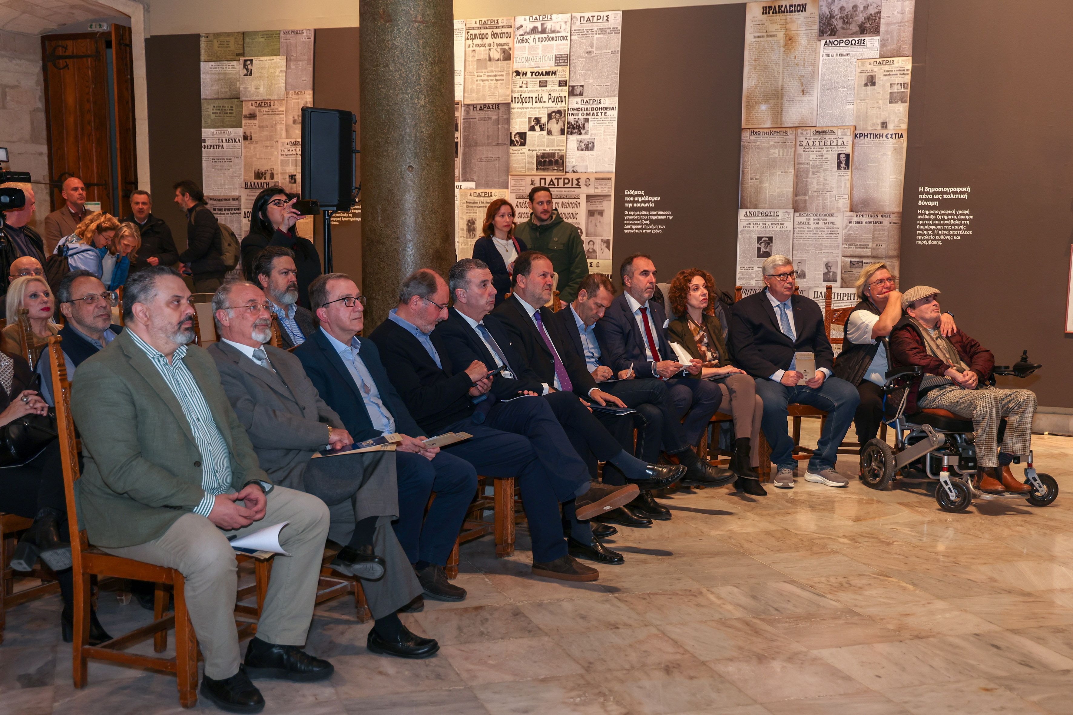 Από την πλευρά της Αυτοδιοίκησης, χαιρετισμό απηύθυναν ο αναπληρωτής Περιφερειάρχης Κρήτης, Γιώργος Πιτσούλης και ο πρόεδρος του Δημοτικού Συμβουλίου, Παντελής Ρυακιωτάκης. «Η ανεξάρτητη δημοσιογραφία παραμένει το τελευταίο ανάχωμα της Δημοκρατίας. Όταν ο δημόσιος διάλογος πολώνεται, η ευθύνη του δημοσιογράφου της Περιφέρειας γίνεται ιερή. Να αποτελεί τη φωνή της λογικής ενάντια στο λαϊκισμό, διασφαλίζοντας ότι η ενημέρωση παραμένει δημόσιο αγαθό και όχι εργαλείο διχασμού» είπε χαρακτηριστικά μεταξύ άλλων ο κ. Πιτσούλης που συνεχάρη την Ε.Σ.Η.Ε.Π.Η.Ν. για την εκδήλωση, ενώ ο κ. Ρυακιωτάκης ευχήθηκε «τα εκατό χρόνια να γίνουν χίλια» και «ο έντυπος τύπος να συνεχίζει να επιβιώνει και να δίνει τις μάχες του».