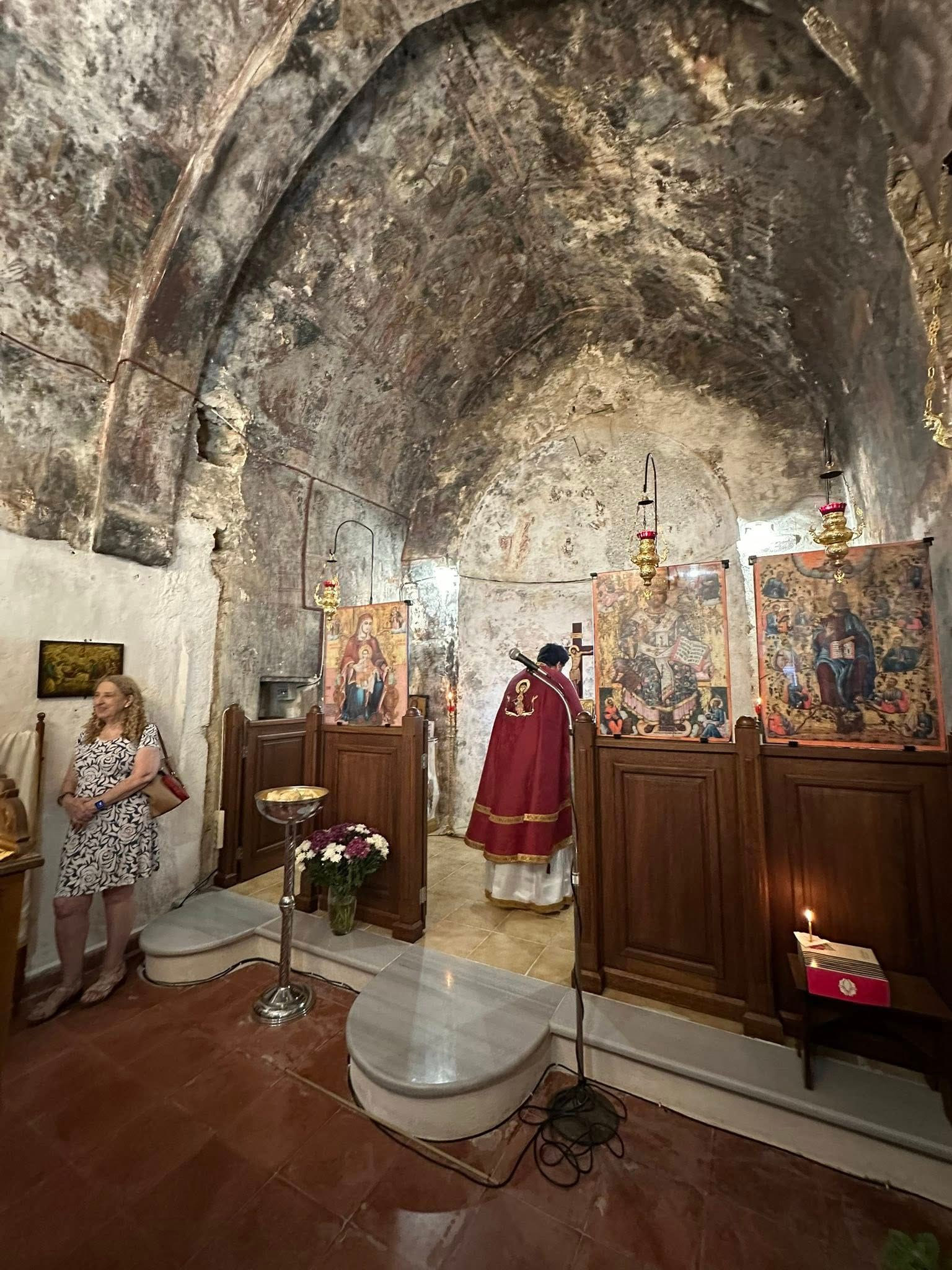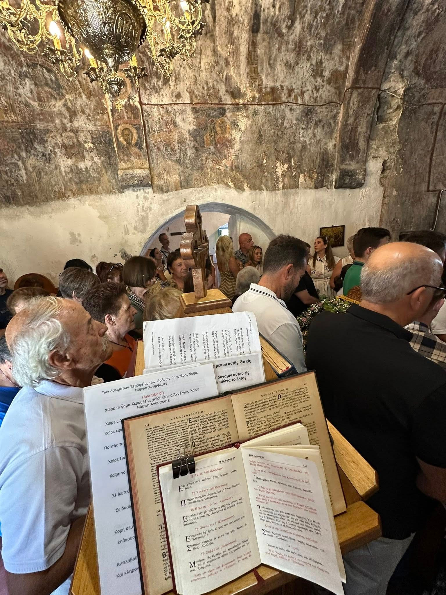 Ανεβαίνω τα πέτρινα σκαλιά και μπαίνω μέσα στον μικρό πρόναο, προσκυνώ ευλαβικά και ανάβω δυο κεριά! Ένα για μένα και ένα για όλους τους δικούς, που δεν κατάφεραν φέτος να έλθουν στην Ελλάδα και στο ετήσιο πανηγύρι, γιατί και αυτοί πρέπει να συνδέονται νοερά με τον γεννησιμιό τους τόπο!