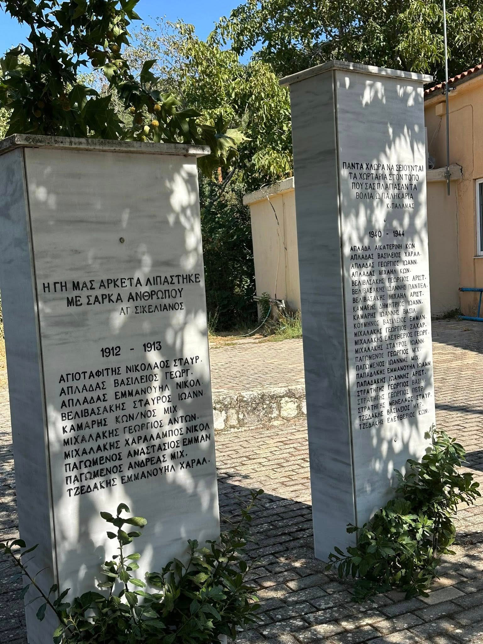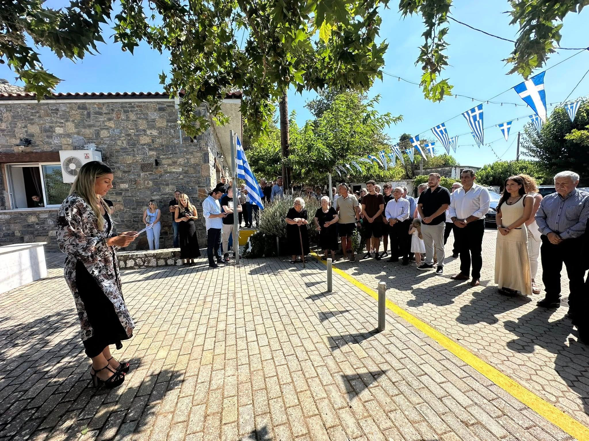 Μετά το τέλος της τελετής, και τους αλληλοασπασμούς με δεκάδες χωριανούς και φίλους, όλοι μαζί πείραμε τον δρόμο για την πλατεία του χωριού. Εκεί, μπροστά από στο ηρώο όλοι μαζί, μικροί και μεγάλοι, πολιτικοί, τοπικοί άρχοντες και απλοί χωριανοί, παραβρεθήκαμε στην επιμνημόσυνη δέηση για τους ήρωες χωριανούς που θυσιάστηκαν στον βωμό της πατρίδας κατά την διάρκεια της Γερμανικής κατοχής! Στο τέλος δε του μνημοσύνου, όλοι μαζί, με μιά φωνή, ευλαβικά και δυνατά για να μας ακούσουν εκεί ψηλά που βρίσκονται , ψάλλαμε το «Αιώνια η Μνημη»…..!