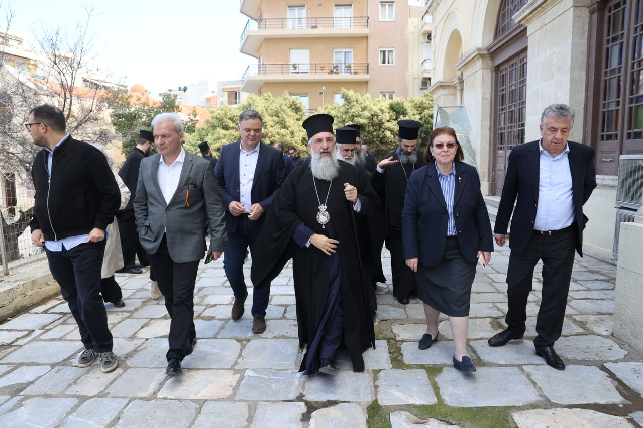 ”Πολλές φορές τα μνημεία μας υπαγορεύουν τους χρόνους παρέμβασεις. Εαν κάποια πράγματα γίνουν γρήγορα, κινδυνεύυμε να κάνουμε λάθη. Έχουμε την τύχη να ξεκινά η προγραμματική περίοδος. Είμαστε απολύτως ώριμοι και είμαστε εδώ όλοι μαζί υπό τον Αρχιεπίσκοπο, ακριβώς για να δείξουμε την επόμενη ημέρα για την αποκατάσταση του Αγίου Μηνά. Η Περιφέρεια Κρήτης με τον Δήμο Ηρακλείου έχουν την αγαθή προαίρεση και πλέον και τα εργαλεία για να προχωρήσουν στη χρηματοδότηση αυτού του έργου μέσω ευρωπαϊκών προγραμμάτων. Η Αρχιεπισκοπή είναι έτοιμη να υποστηρίξει το Υπ.Πολιτισμού, το οποίο θα αναλάβει να εκτελέσει το έργο, το οποίο απαιτεί ειδική τεχνογνωσία. Μας ενδιαφέρει το πάρα πολύ σημαντικό μνημείο για το Ηράκλειο και την Κρήτη, με τους έντονους συμβολισμούς να αποδοθεί έτοιμο και ασφαλές. Το έργο θα δημοπρατηθεί με τα χρονοδιαγράμματα που επιβάλουν οι νόμοι”