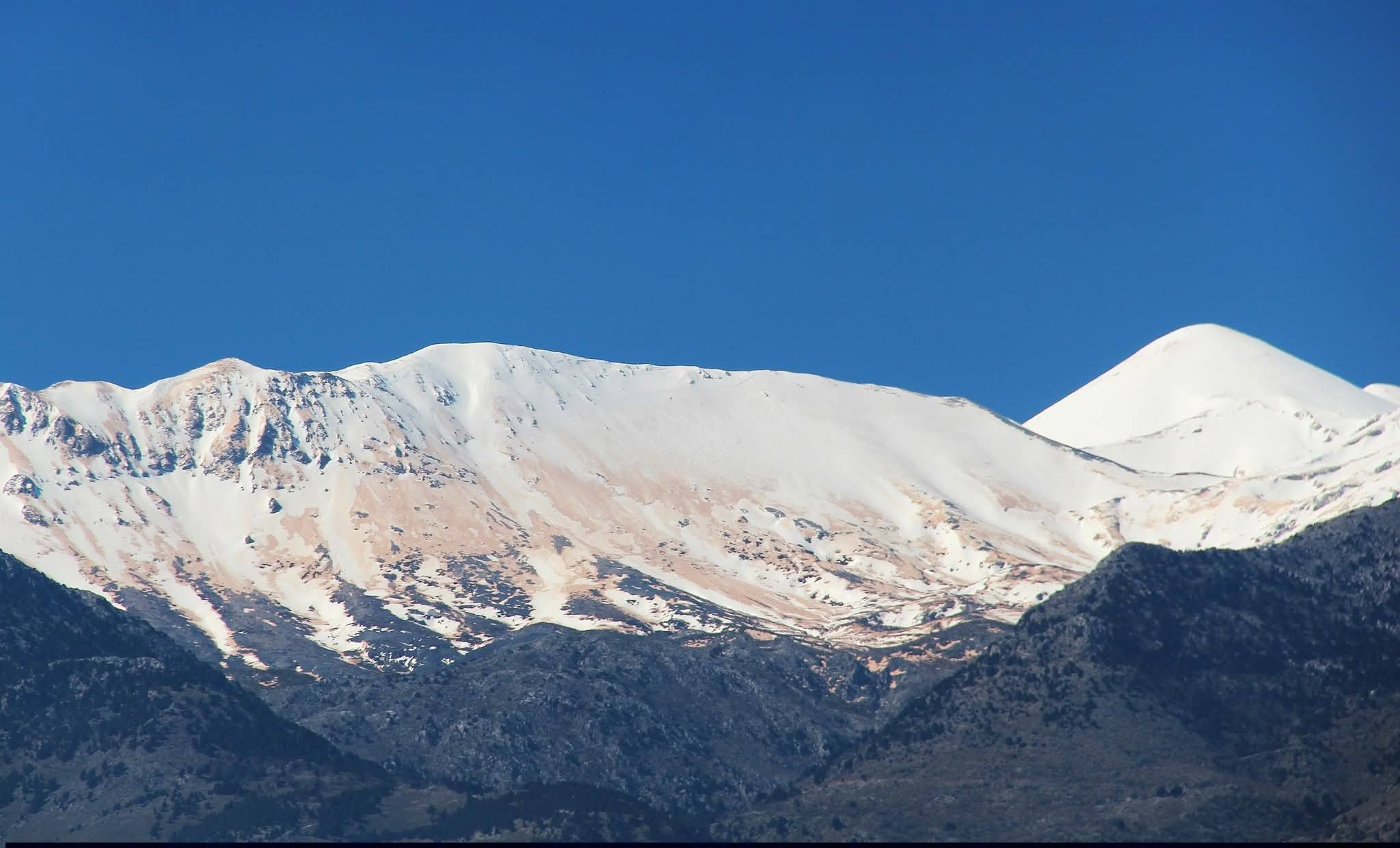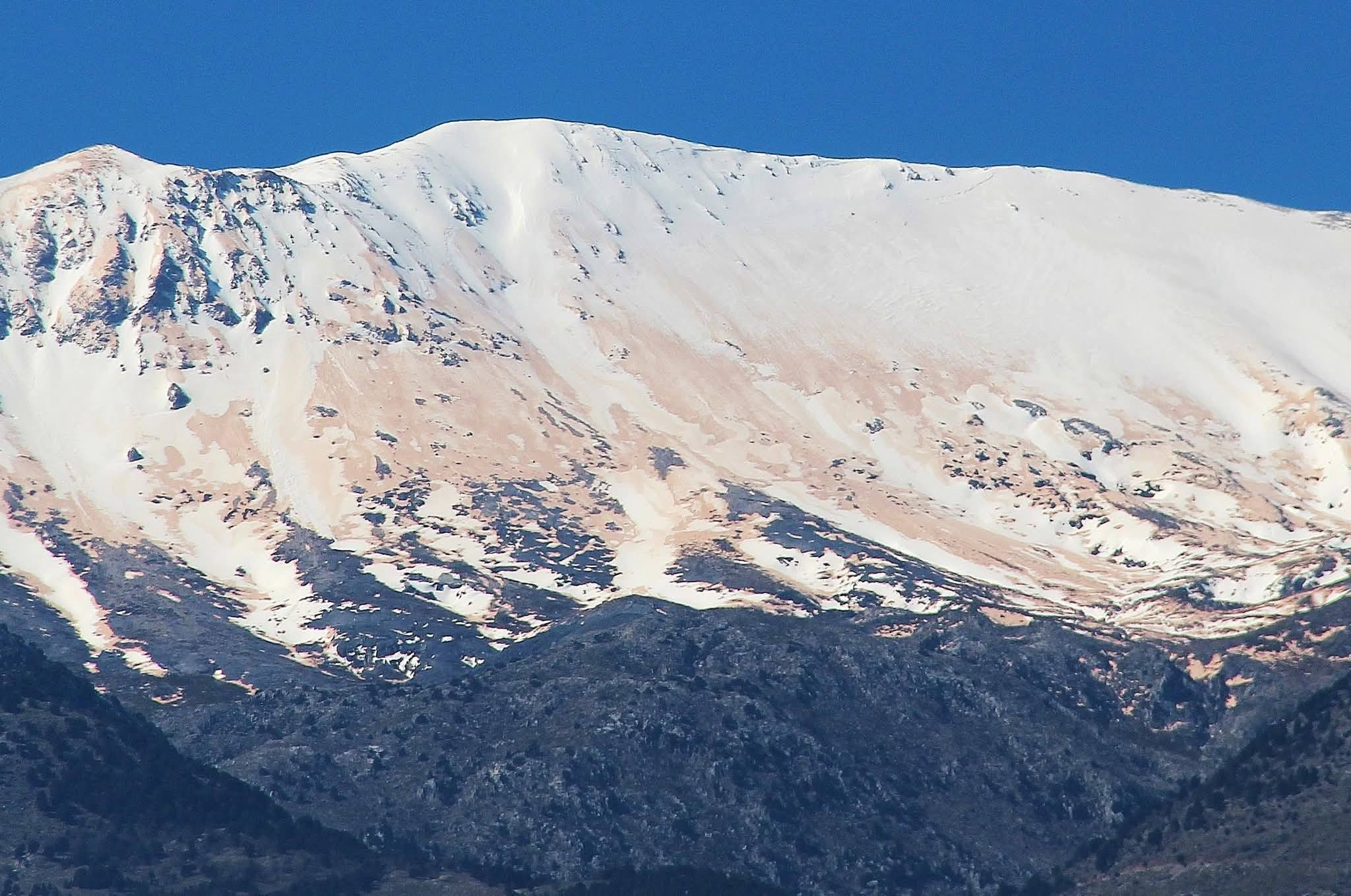 Η Αφρικάνικη σκόνη που έπεσε σε τεράστιες ποσότητες την 1η Απριλίου στην Κρήτη έβαψε “κόκκινο” και το λιγοστό χιόνι στις κορυφές των Λευκών Ορέων δίνοντας μια απόχρωση πιο ροζ.
