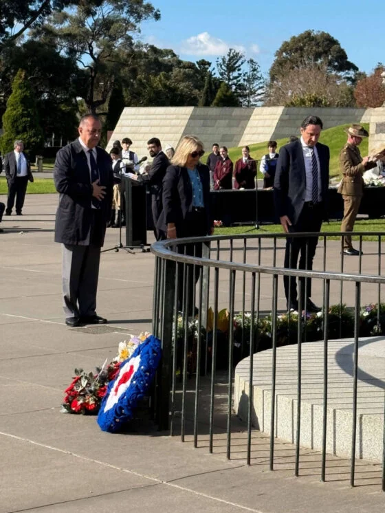 Το Σάββατο, το Συντονιστικό Συμβούλιο Μνήμης της Μάχης της Κρήτης και Υπόλοιπης Ελλάδας διοργάνωσε τελετή κατάθεσης στεφάνων στο Μνημείο Πεσόντων (Shrine of Remembrance) και στο Ελληνοαυστραλιανό Μνημείο. Εκεί, η Ομογένεια απέτισε φόρο τιμής στους Αυστραλούς και Νεοζηλανδούς στρατιώτες που με ανδρεία πολέμησαν στο πλευρό των Ελλήνων.