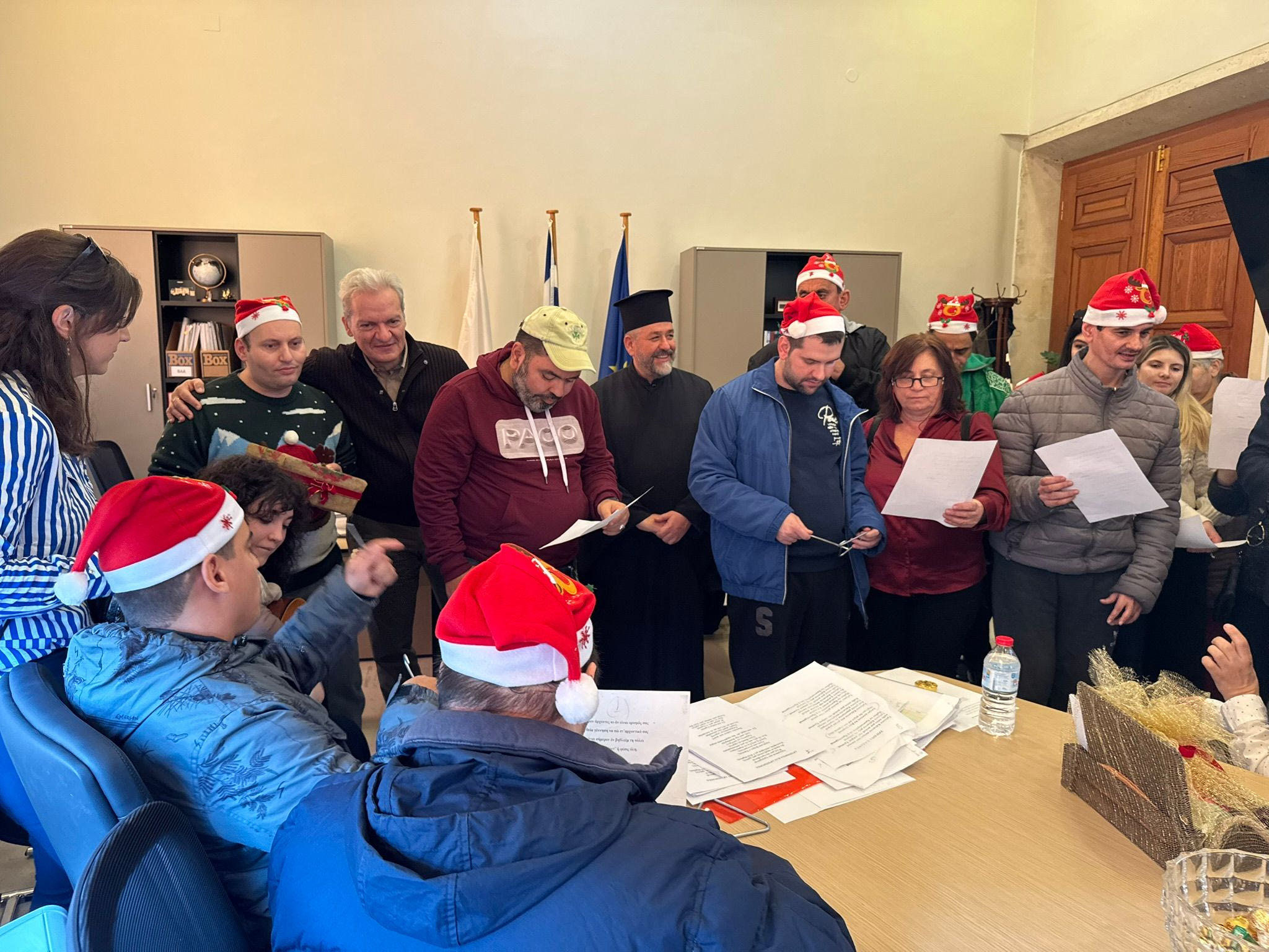 Τον Δήμαρχο Ηρακλείου επισκέφτηκαν επίσης και τα μέλη του Κέντρου Ειδικών Παιδιών «Άγιος Σπυρίδων», συνοδευόμενα από τον Πρόεδρο του Κέντρου ιερέα Ιωάννη Μπολάκη, τη Γραμματέα Μαρία Γιγουρτάκη, τον Ταμία Κωνσταντίνο Μεταξάκη, την διοικητική υπεύθυνη Έφη Κούμλα, την κοινωνική λειτουργό Μυρσίνη Καρατζά και την ειδική παιδαγωγό Κυριακή Κοτζαδάκη. Τα μέλη του Κέντρου προσέφεραν αναμνηστικό δώρο στον Αλέξη Καλοκαιρινό και με πολύ κέφι τραγούδησαν πανέμορφα τα Κρητικά κάλαντα και άλλα Χριστουγεννιάτικα τραγούδια.