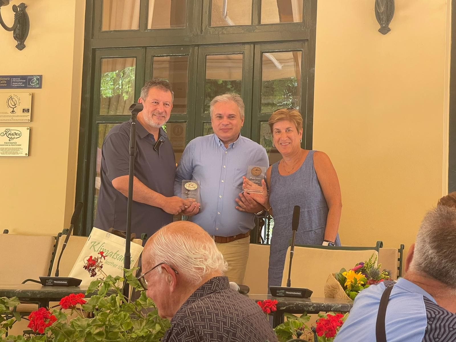 Στο πλαίσιο της συνάντησης αυτής, η Παγκρητική Ένωση Αμερικής και το Παγκόσμιο Συμβούλιο Κρητών τίμησαν τον ιδιοκτήτη του Ιστορικού Καφέ «Κήπος», κ. Βασίλη Σταθάκη, για την πολύτιμη προσφορά του στη διατήρηση της ιστορίας και της ταυτότητας του ιστορικού αυτού χώρου με σεβασμό και συνέπεια.