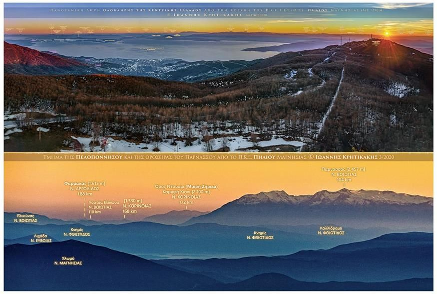 Φωτογραφικό πανόραμα ολόκληρης της κεντρικής Ελλάδος (και στο κάτω μέρος η Πελοπόννησος) απο την κορυφή Αηδονάκι του Πηλίου, Ιωάννης Κρητικάκης 2020