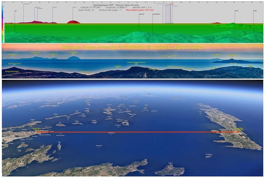 Στην απορία μας εάν φαίνεται από την Αττική κάποια κορυφή της Τουρκίας προς τα ανατολικά και υπό ποιες συνθήκες ο Ιωάννης Κρητικάκης είπε: «Η Τουρκία δεν φαίνεται ούτε από την Πάρνηθα, ούτε από την Πεντέλη, ούτε από τον Υμηττό, ούτε από το Πάνειο. Και δεν έχω δει ποτέ κάποιον αντίστοιχο χάρτη ή σχεδιάγραμμα απεικόνισης ορατότητας να πέφτει έξω στην παραμικρή λεπτομέρεια».