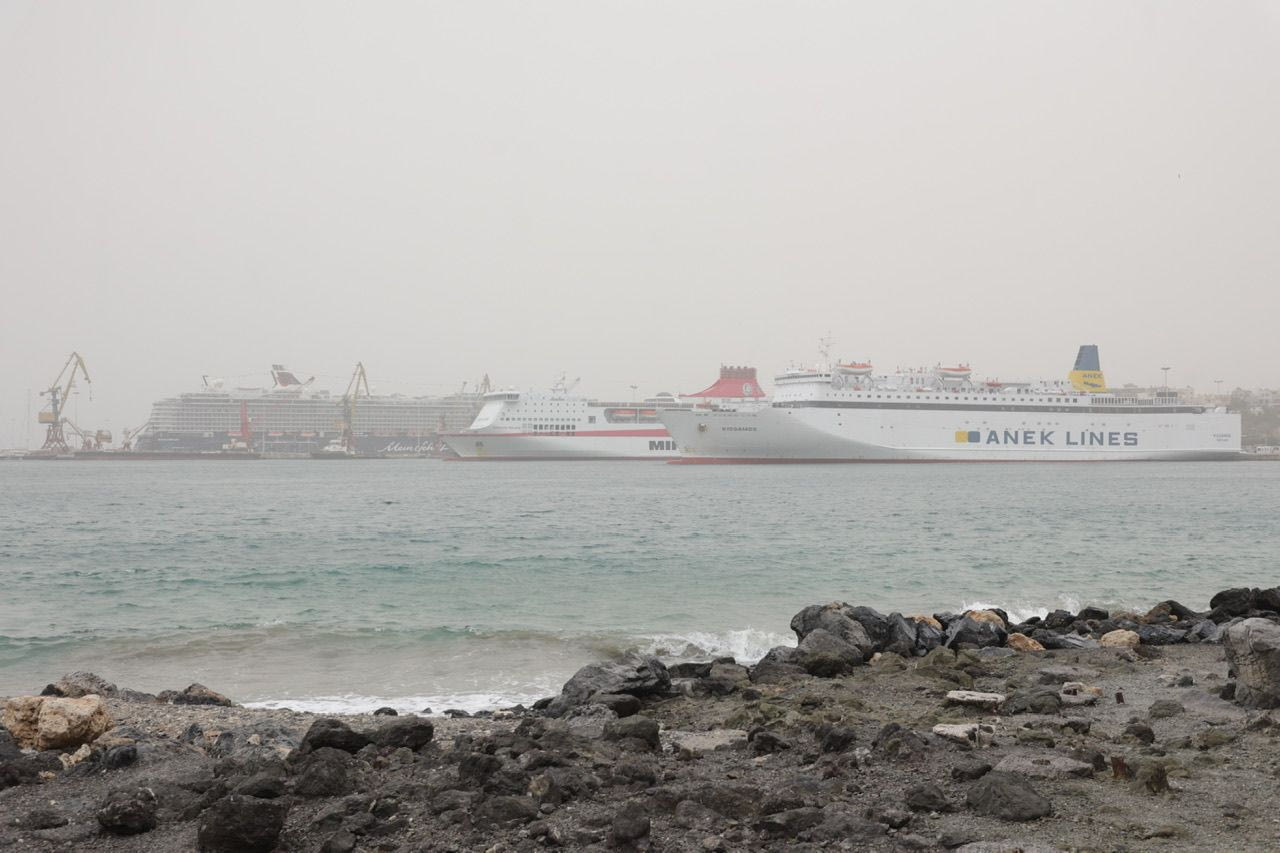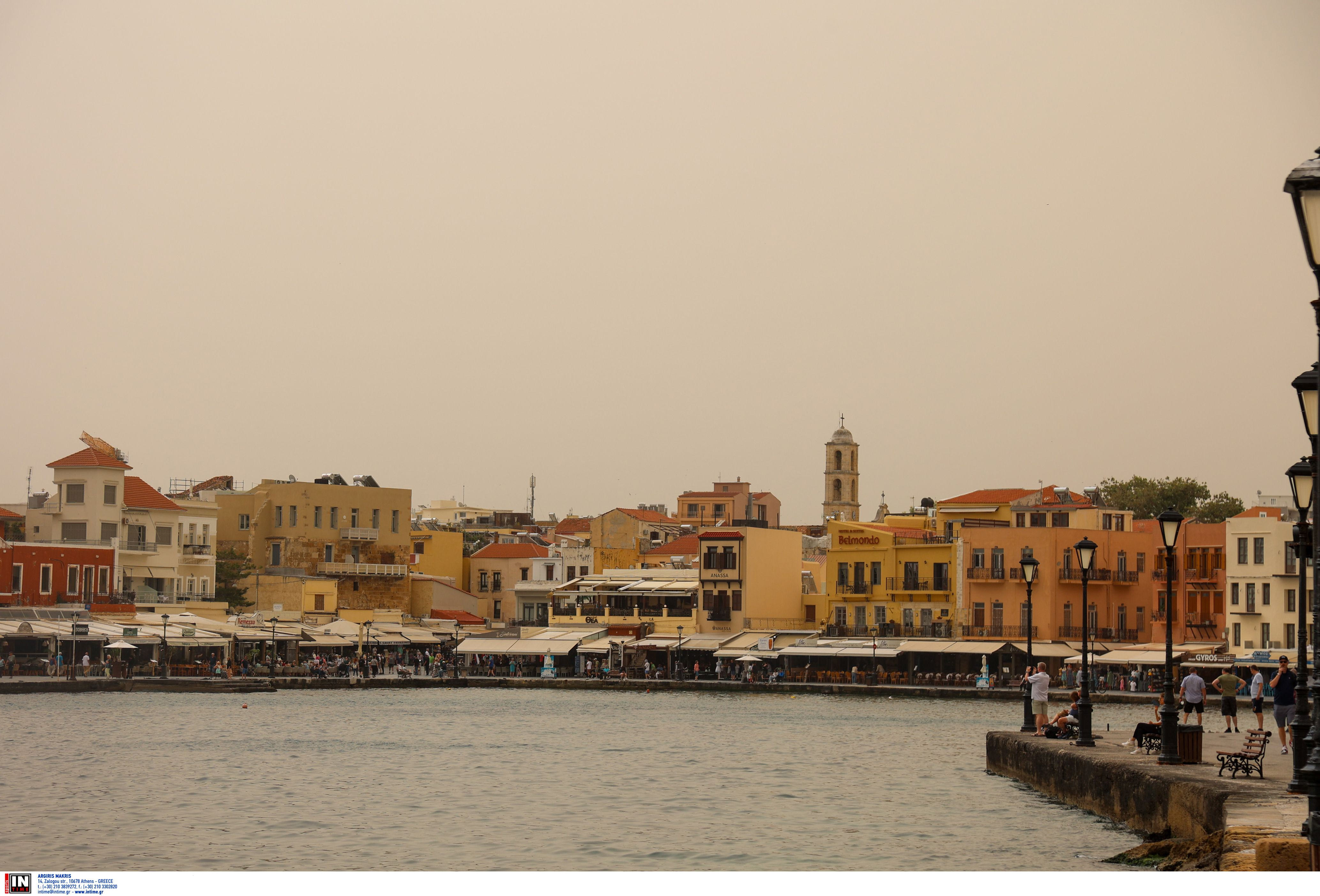 Στα Χανιά η σκόνη έχει… επιβάλλει το φίλτρο της στον ουρανό (φωτογραφίες: Intime)