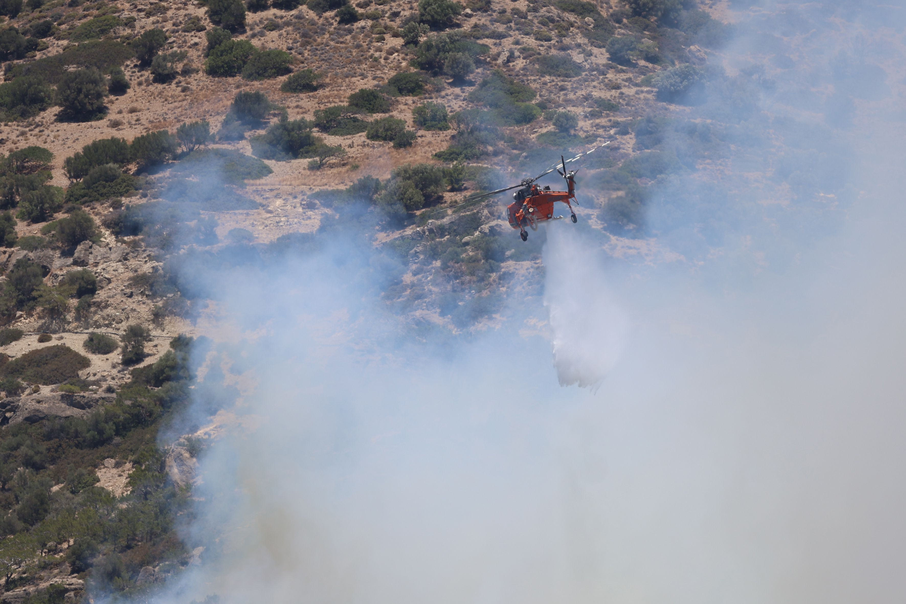 Τουλάχιστον 10 εναέρια μέσα ξεκίνησαν τις ρίψεις νερού, με το πρώτο φως της χθεσινής ημέρας. Η αλλαγή της κατεύθυνσης του ανέμου, χθες το πρωί, από εχθρός έγινε σύμμαχος. Οι φλόγες έστρεψαν την προσοχή τους προς τα ήδη καμένα και η κατάσταση από τις μεσημβρινές ώρες της Πέμπτης, βελτιώθηκε, αν μπορεί να ειπωθεί κάτι τέτοιο, βλέποντας κανείς, τα αποτελέσματα της πυρκαγιάς.
