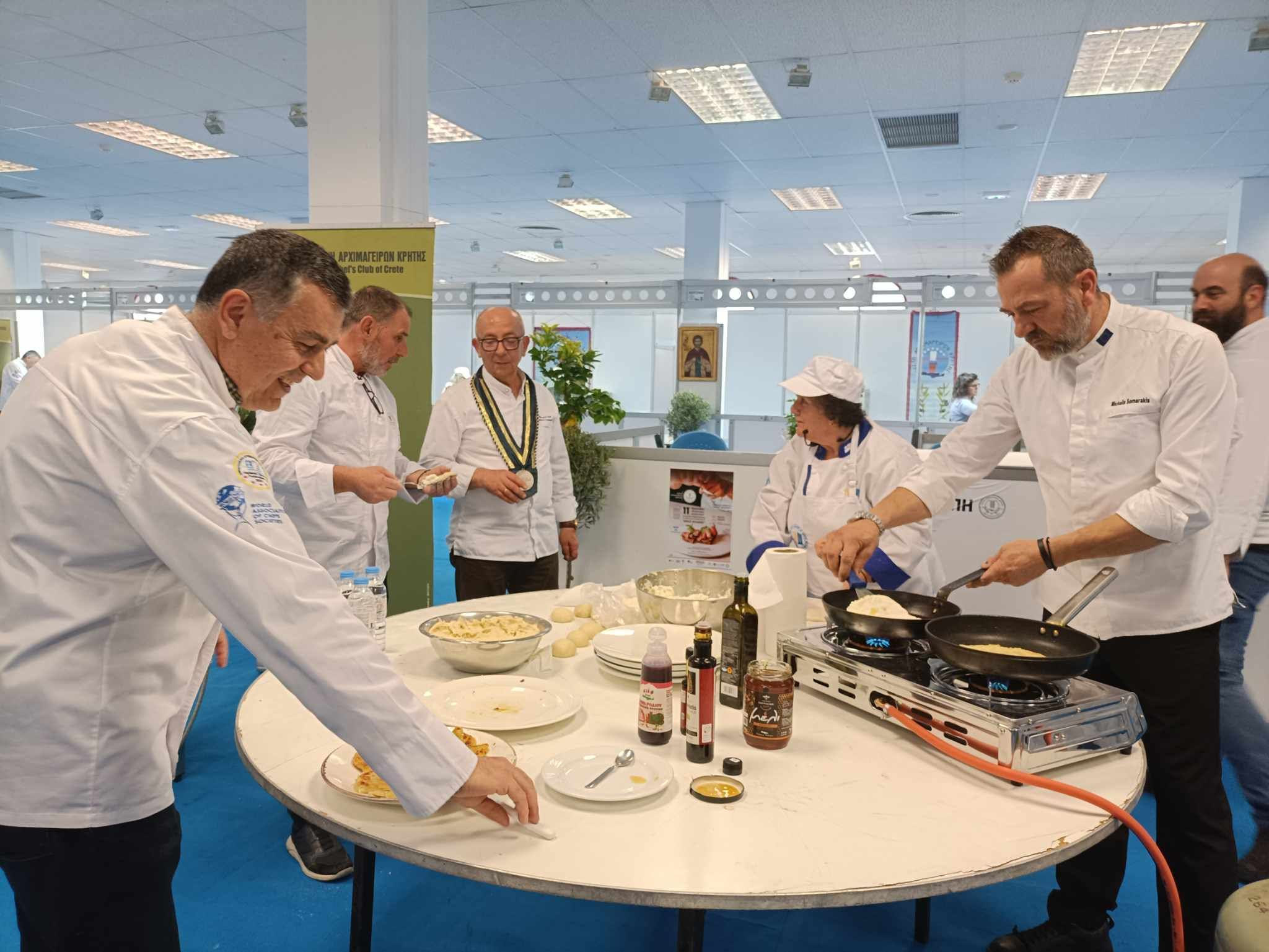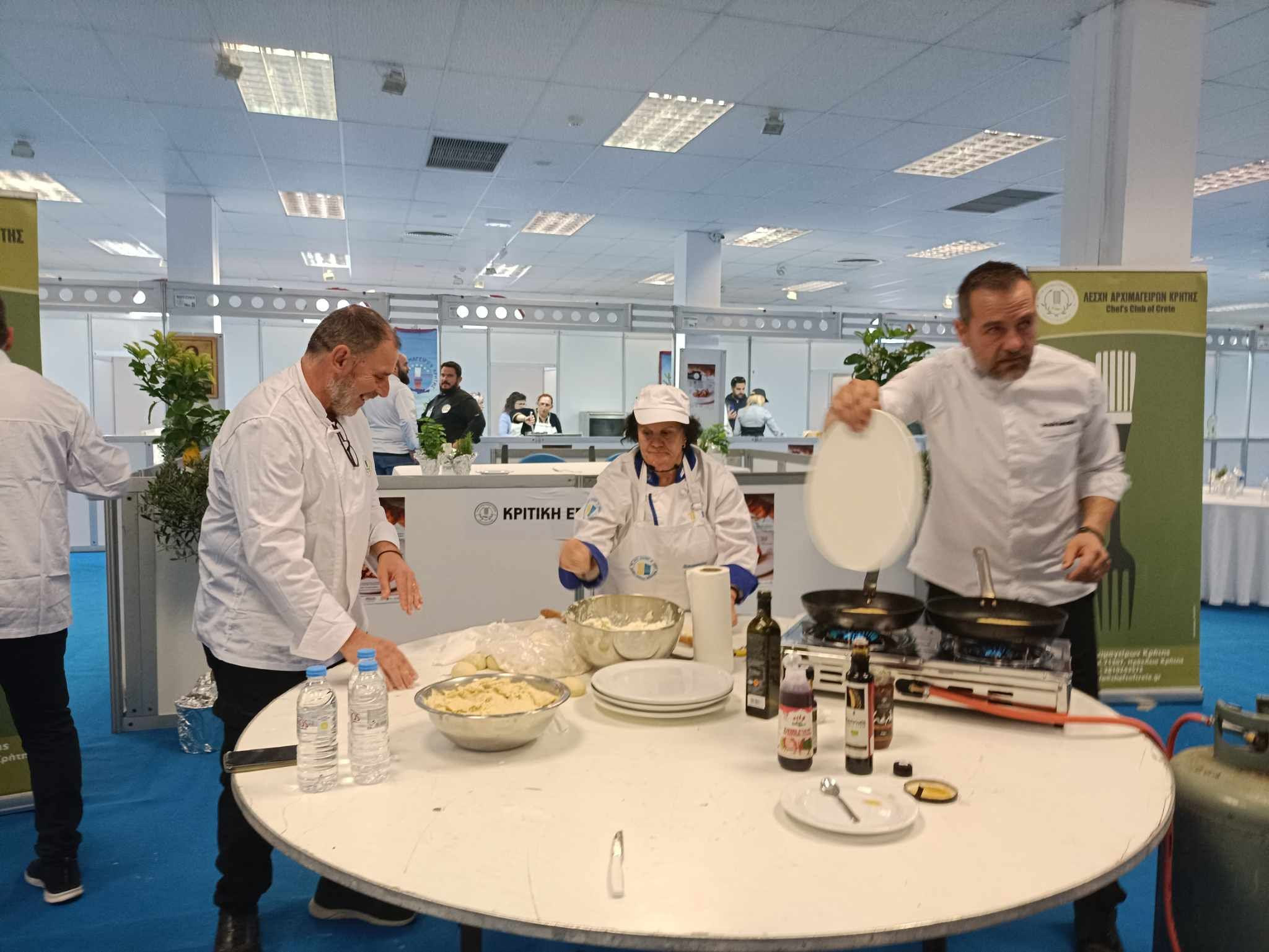 Η κυρία Ιωάννα μόνο μέσα στο 2025 έχει δημιουργήσει σφακιανές πίτες σε πέντε εκδηλώσεις ενώ για να καταλάβουμε την ταχύτητα με την οποία δημιουργεί θα πρέπει να επισημάνουμε ότι στη δράση που έγινε στο εκθεσιακό κέντρο η ίδια έφτιαχνε τις πίτες και τέσσερις συνάδελφοι της έψηναν και σέρβιραν χωρίς να μένουν καθόλου χωρίς δουλειά!