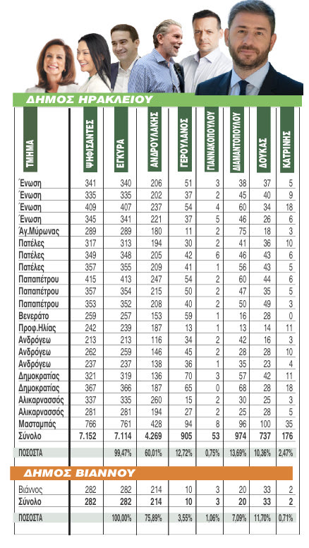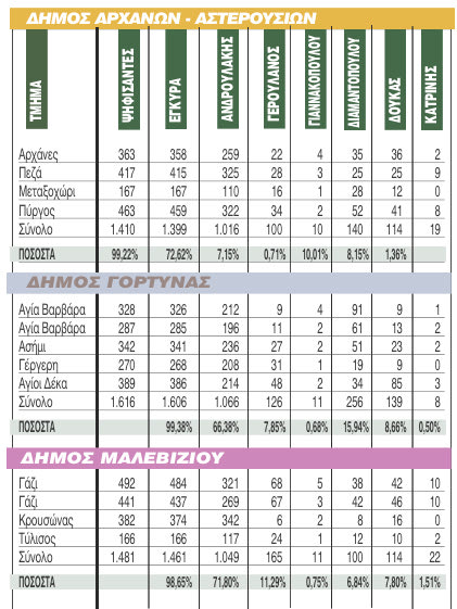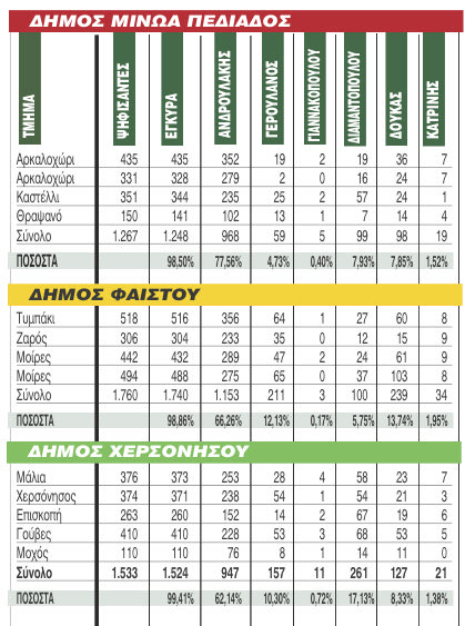 Δείτε αναλυτικά τα αποτελέσματα στους δήμου του Ηρακλείου