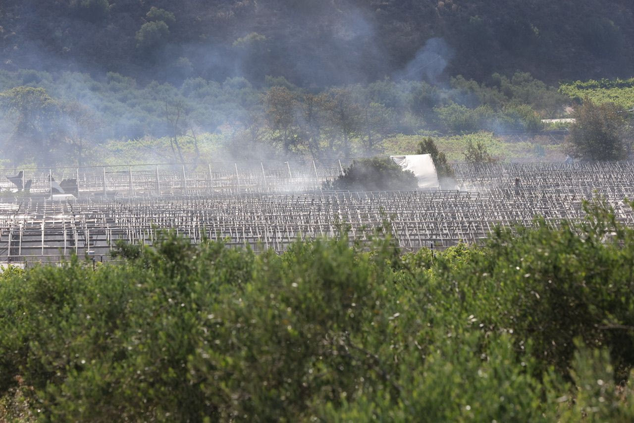 Μηχανήματα έργου και υδροφόρες του Δήμου Ηρακλείου συνδράμουν στη μάχη για την οριστική κατάσβεση της πυρκαγιάς.