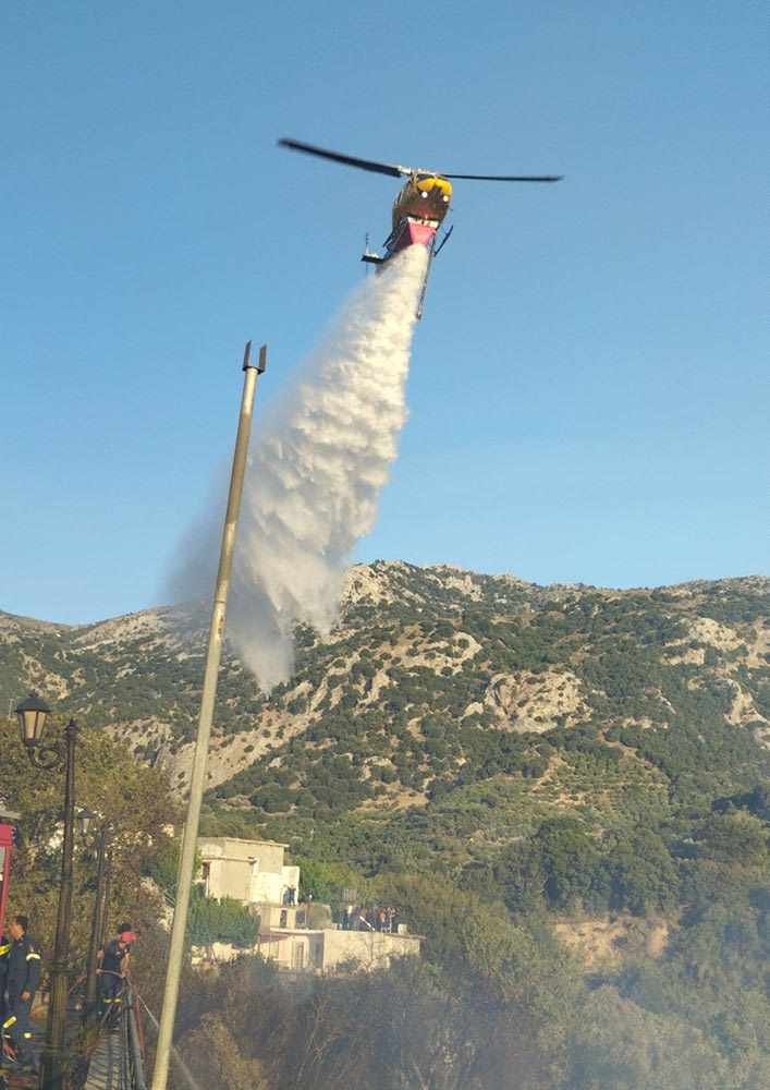 Στην περιοχή βρίσκονται και άνθρωποι του Δήμου Βιάννου, όπως ο Δήμαρχος, Παύλος Μπαριτάκης και αντιδήμαρχοι. Όπως μας μετέφερε ο εντεταλμένος σύμβουλος Πολιτικής Προστασίας του Δήμου Βιάννου, Καρτσάκης Θεόδωρος, οι δυνατές ριπές του αέρα δυσκολεύουν το έργο των δυνάμεων κατάσβεσης, όπως φαίνεται πως δεν κινδυνεύουν σπίτια.