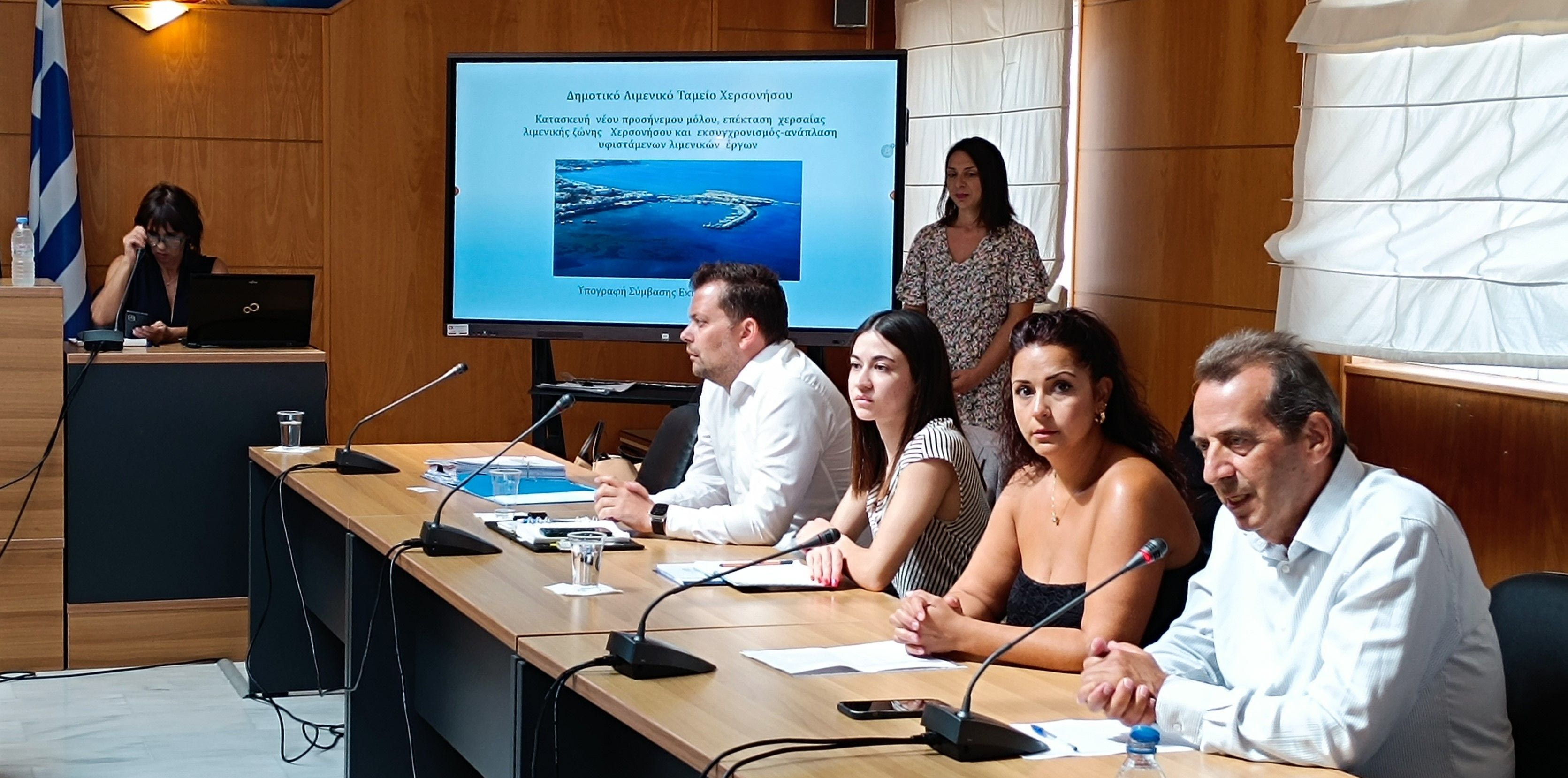 Υπογράφτηκε στο Δημοτικό Κατάστημα Λιμένος Χερσονήσου του Δήμου Χερσονήσου, η σύμβαση για την εκπόνηση μελέτης του έργου κατασκευής νέου προσήνεμου μόλου, επέκταση της χερσαίας λιμενικής ζώνης Χερσονήσου και εκσυγχρονισμού-ανάπλασης των υφιστάμενων λιμενικών έργων. Το έργο αποτελεί ένα βασικό αναπτυξιακό έργο του Δημοτικού Λιμενικού Ταμείου Χερσονήσου, το οποίο και αποσκοπεί στην αναβάθμιση λειτουργικότητας του λιμένα Χερσονήσου.