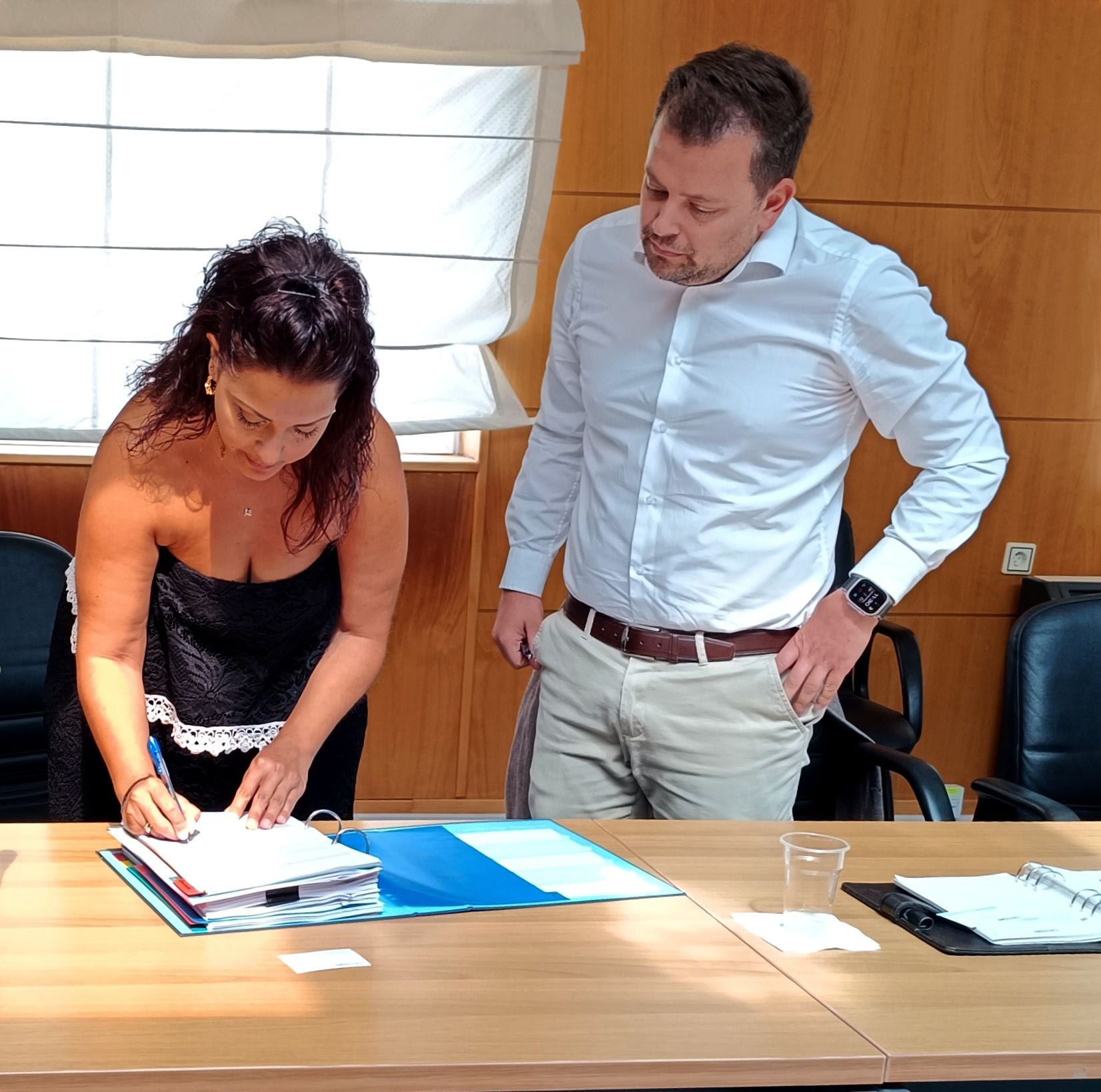 Η υπογραφή της σύμβασης έγινε παρουσία του Δημάρχου Χερσονήσου κ. Ζαχαρία Δοξαστάκη, μεταξύ της προέδρου του Δημοτικού Λιμενικού Ταμείου Χερσονήσου κ. Κατερίνας Θραψανιώτη και του κ. Γιάννη Μπούντρη, πολιτικού μηχανικού – λιμενολόγου, εκπροσώπου της αναδόχου Ένωσης Οικονομικών Φορέων «Τρίτων Σύμβουλοι Μηχανικοί Τεχνική Ανώνυμος Εταιρία – Δ.Τ.: Τρίτων Σύμβουλοι Μηχανικοί Α.Ε., «Άλκων Μελετητική Ε.Π.Ε.», – «Θέρος – Κ. Γρηγοράτος και Συνεργάτες Ι.Κ.Ε. Δ.Τ.: Θέρος Αρχιτέκτονες Ι.Κ.Ε» – «Παναγιώτης Ανδρονόπουλος του Βασιλείου».