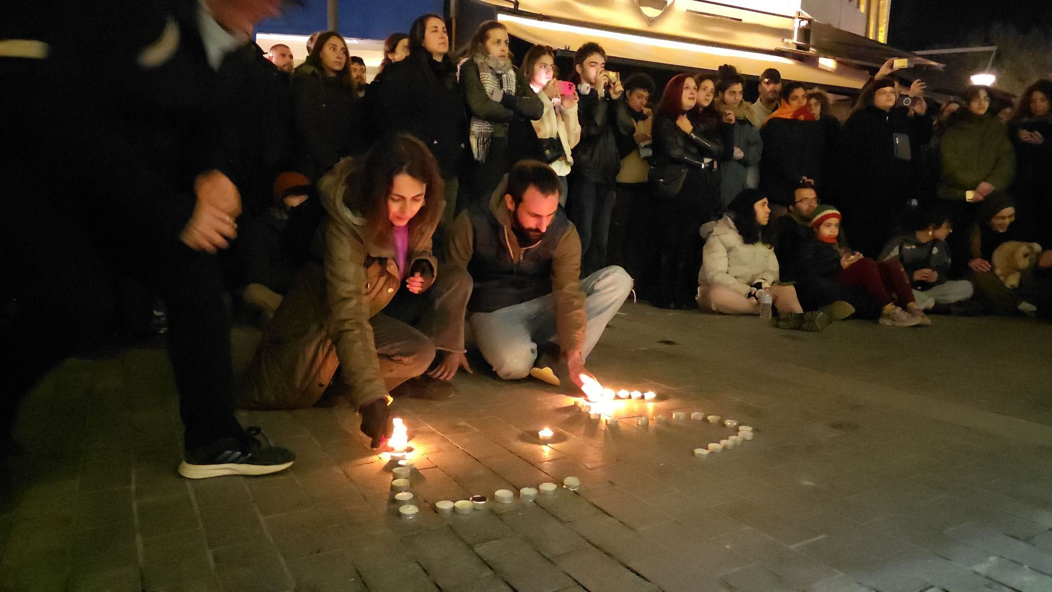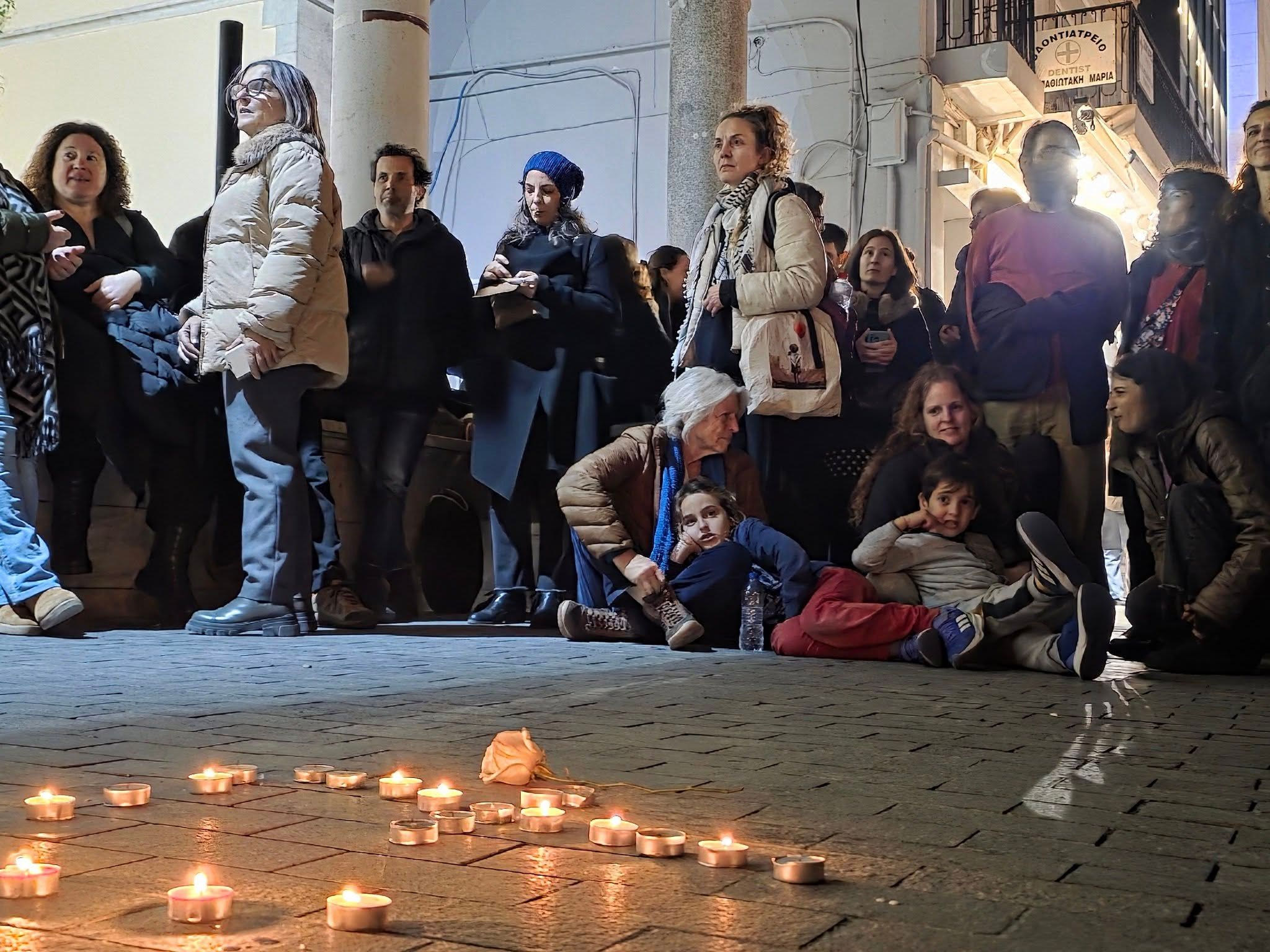 Εξω από τη Βασιλική του Αγίου Μάρκου, πολίτες κάθε ηλικίας σχημάτισαν με κεριά τον αριθμό 57 που αντιστοιχεί στα θύματα της τραγωδίας και δίπλα άφησαν ένα λευκό τριαντάφυλλο…