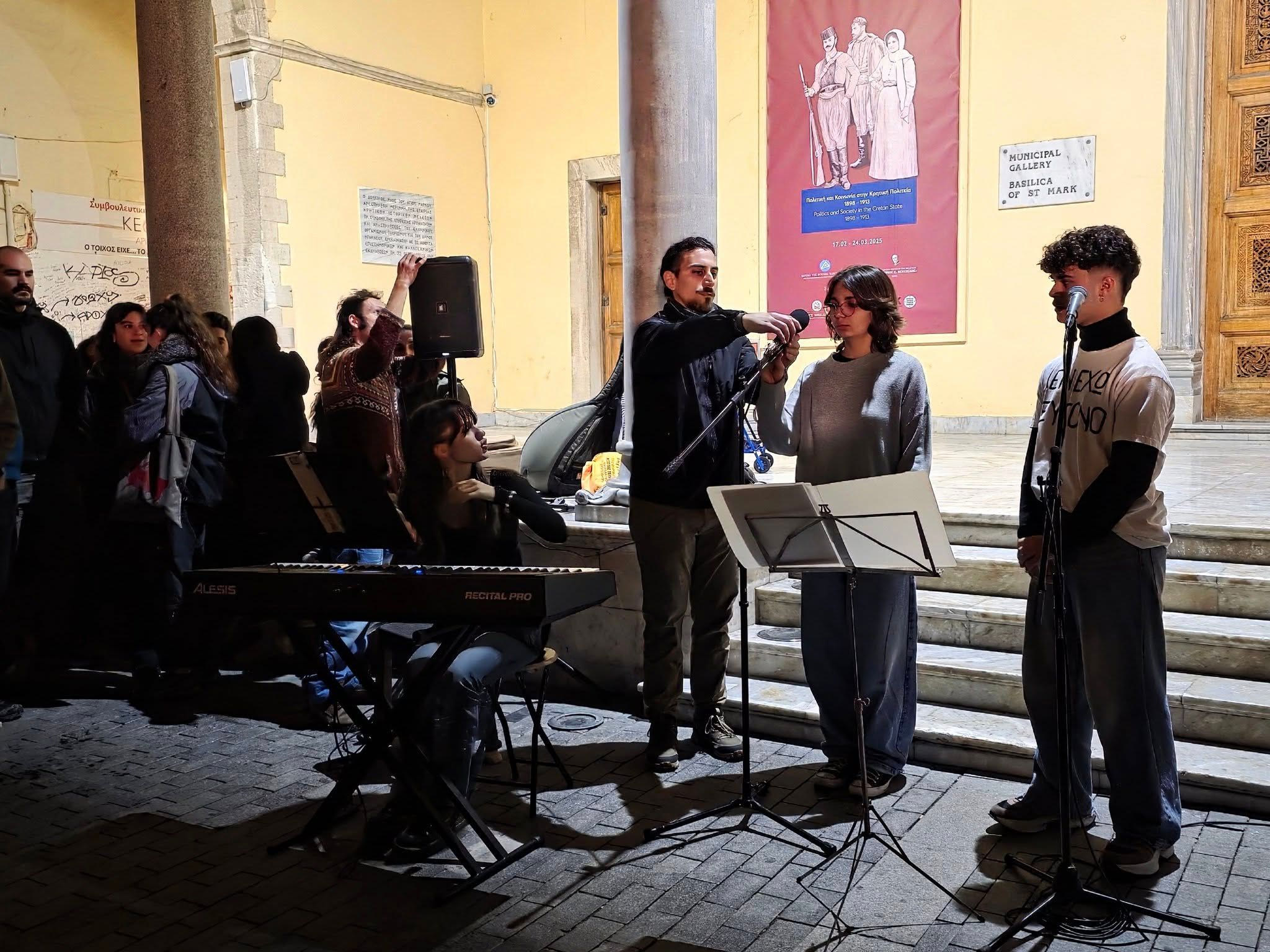 Πλήθος κόσμου βρέθηκε στην “καρδιά” του Ηρακλείου, την πλατεία Λιονταριών και το βράδυ της Παρασκευής, όπου παρακολούθησε με κατάνυξη τη μουσική διαμαρτυρία των μελών του Πανελλήνιου Μουσικού Συλλόγου (παράρτημα Κρήτης).