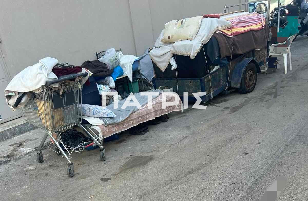 Ένας άστεγος άνδρας έχει ολόκληρο το νοικοκυριό του στην άκρη του δρόμου. Η οικοσκευή του φορτωμένη σε μια μπαγαζιέρα και σε ένα καρότσι του σούπερ μάρκετ, το κρεβάτι του καλοστρωμένο, τα πράγματά του τακτοποιημένα. Από κοντά ο ίδιος, καθισμένος χωρίς να ενοχλεί κανένα.