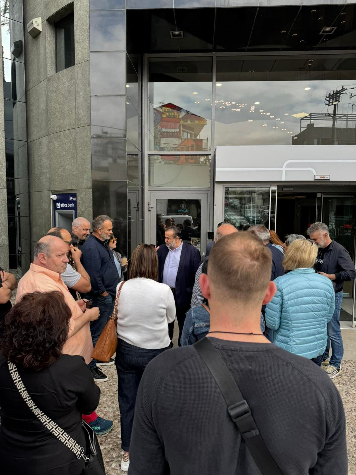 Έξω από τα γραφεία της Παγκρήτιας τράπεζας στην Λ.Ικάρου συγκεντρώθηκαν το πρωί της Τετάρτης οι κάτοικοι του Καστελλίου με τον Δήμαρχος Μινώα Πεδιάδας, Βασίλη Κεγκέρογλου, που αντιδρούν στο κλείσιμο του καταστήματος στην περιοχή τους.